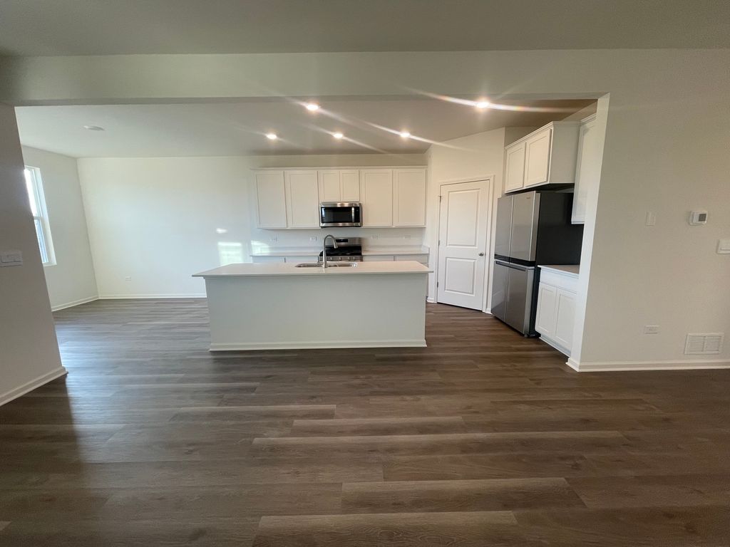 Discover yourself at 10099 Fleetwood St. in Huntley, Illinois, a beautiful new home in our Cider Grove community. This home will be ready for a end of summer move in! This oversized homesite backs up to open space and has a fully sodded yard. The Fairfield plan offers 1970 square feet of living space. 4 bedrooms, 2 full baths, 9-foot ceilings, a 3-car garage and a partial basement with roughed in plumbing. Entertaining will be easy in this open-concept kitchen and family room layout with a large island with an overhang for stools, and 42-inch designer cabinetry with crown molding and soft close drawers. Additionally, the kitchen features a walk-in and butler's pantry, modern stainless-steel appliances, quartz countertops and easy-to-maintain luxury vinyl plank flooring. Enjoy your private getaway with your large primary bedroom and en suite bathroom with raised height dual sink, quartz top vanity, and walk-in shower with clear glass shower doors. Convenient walk-in laundry room, 3 additional bedrooms with a full second bath and linen closet complete this amazing ranch home. All homes at Cider Grove include energy efficient ERV furnace system, and a tankless hot water heater. All Chicago homes include our America's Smart Home Technology. Interior photos are of similar home and model home. Actual home built may vary.