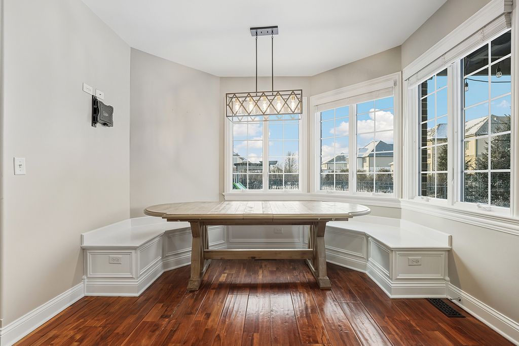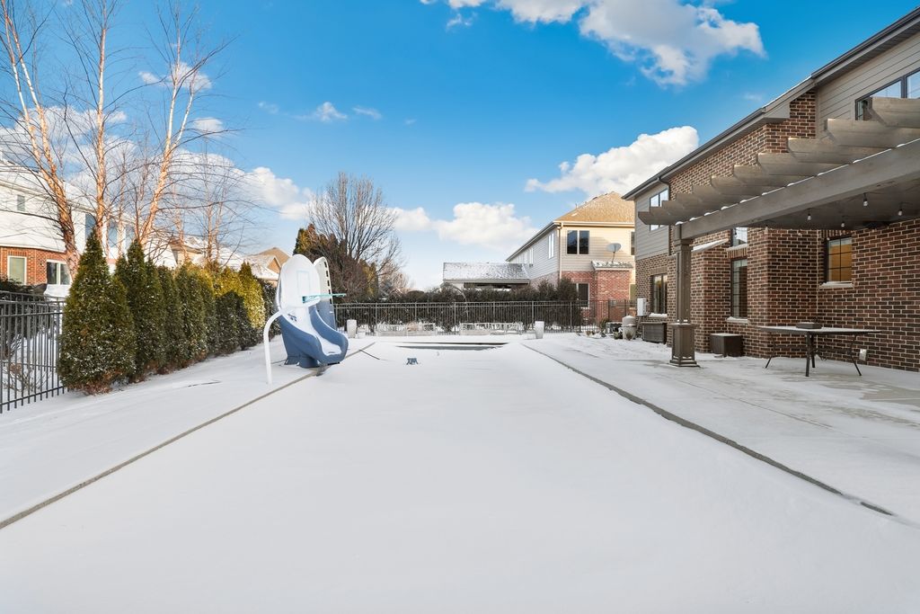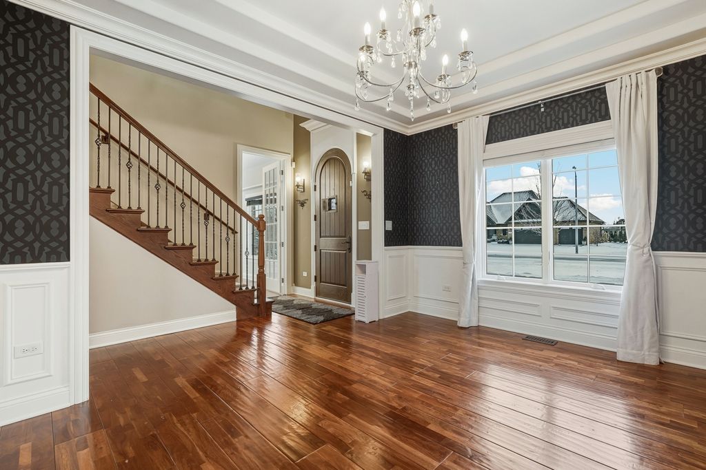Experience the perfect blend of timeless elegance and modern luxury in this exceptional two story residence in Waters Chase of New Lenox! A striking brick arched portico sets the tone as you enter a grand foyer highlighted by gleaming hardwood floors and a dramatic staircase. Entertain effortlessly in the formal dining room featuring a tray ceiling, refined wall moldings, and a classic chandelier that creates an unforgettable setting for special gatherings. The chef's kitchen is the heart of the home, offering a generous center island, granite countertops, high end stainless steel appliances, walk-in pantry storage, and built-in dinette, ideal for everyday meals. Just beyond, a well appointed mudroom and convenient laundry area add function without sacrificing style. The grand living room commands attention with soaring two story coffered ceilings and a timeless fireplace, creating a warm yet sophisticated atmosphere. A guest bedroom, private study, and elegant powder room complete the main level. Upstairs, unwind in the luxurious primary suite featuring an expansive walk-in closet and spa inspired ensuite with dual vanities, a soaking tub, step in shower, and linen storage. Two additional spacious bedrooms each offer vaulted ceilings and private ensuites, while a versatile loft provides flexible space for work or relaxation. The newly finished basement expands the living area with a theater room complete with a dry bar, an additional full bath, and bedroom #5. Step outside to your own private retreat where a sprawling new patio and pergola overlook an inviting in-ground pool and a fully fenced yard, perfect for entertaining or quiet evenings at home. An attached three car garage provides ample parking and storage. Thoughtfully designed for comfort and efficiency, the home also features a new zoned air conditioning system and furnace, installed in 2023. Other recent improvements include the basement remodel, a new automatic pool cover, skimmer boxes, valves, drainage pipes, patio and landscaping 2025. Ideally located near the Old Plank Road Trail, New Lenox Commons, Sanctuary Golf Course, and a wide array of shopping and dining, this home also offers access to award-winning Lincoln Way schools. A rare opportunity to own a truly distinguished residence in one of New Lenox's most desirable settings, where luxury, comfort, and location come together seamlessly.