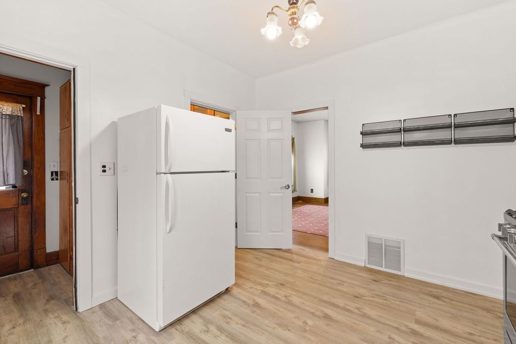 From the moment you step into this beautiful home you will be welcomed by the lovely wordwork throughout. Enjoy the spacious living and dining room, along with a den perfect for a home office, reading room or whatever suits your needs. The completely remodeled kitchen has a walk-in pantry for extra storage and includes the appliances. Upstairs you will find spacious bedrooms and a remodeled full bathroom. The walk-up attic provides excellent additional storage. Step out to your fully fenced in yard and oversized 2-car garage. This home has many upgrades adding peace of mind to the new buyers, including reverse osmosis, whole house filtration system, new siding, gutters, furnace and back deck in 2025. Additionally seller is offering TMI home warranty with accepted offer. Do not wait to come make this home yours today!