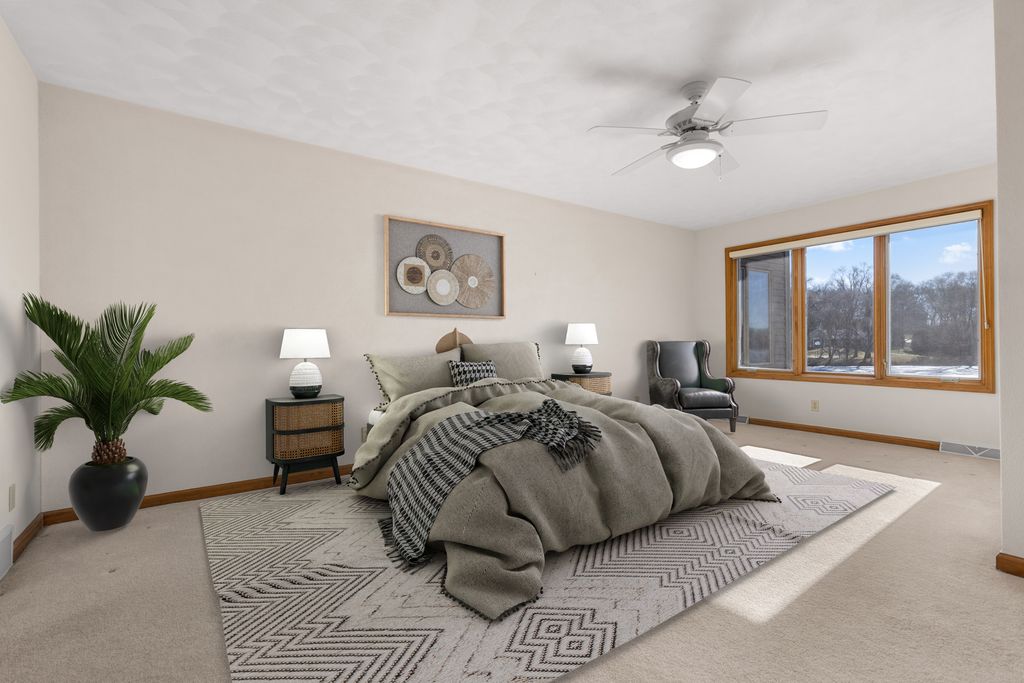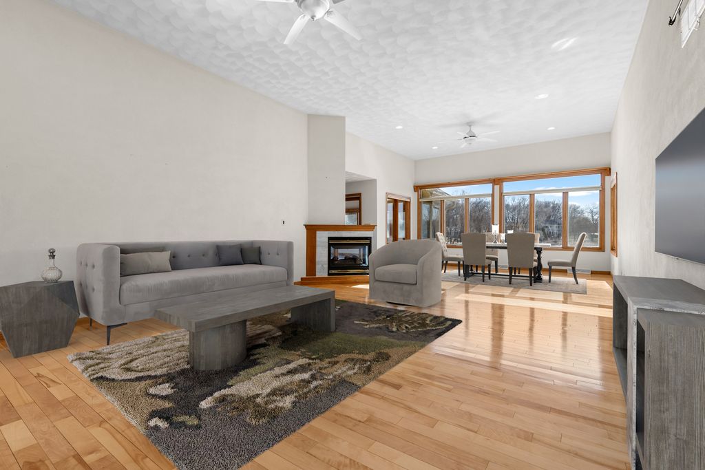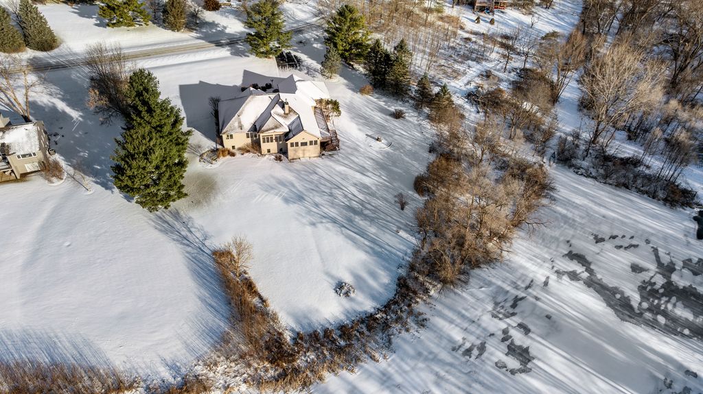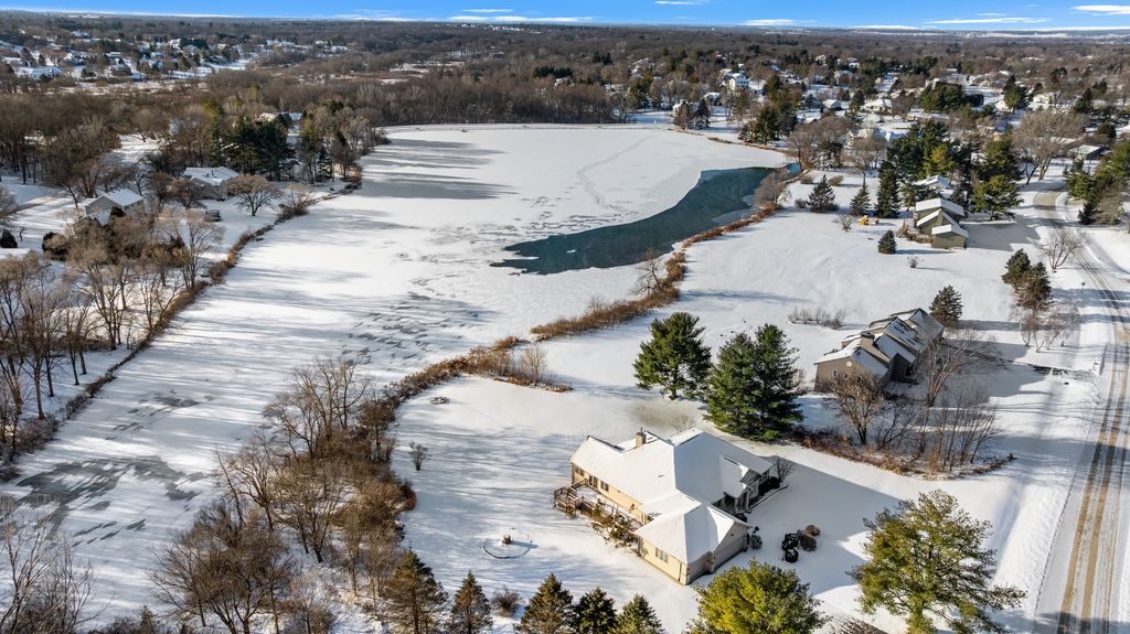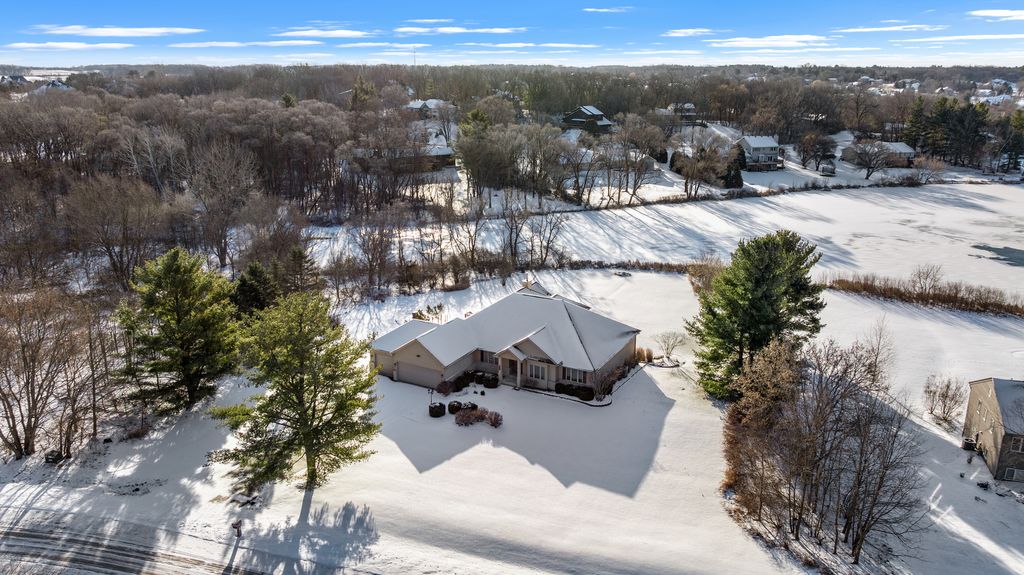 Experience the lifestyle Legend Lake has to offer in this meticulously maintained ranch. This home boasts over 4,100 square feet of living space, blending timeless finishes with the serenity of a lakefront setting. The main level features solid maple floors throughout and a welcoming foyer. The formal dining room showcases vaulted ceilings, while the living room impresses with 11-foot ceilings, a gas fireplace, and large transom windows that frame picturesque lake views. The spacious kitchen includes oak cabinetry, solid-surface countertops, an island with a movable solid-surface dining table, and white appliances with a double oven. An eat-in area fills with natural light and provides access to the sunroom, which features a ductless HVAC unit, knotty pine vaulted ceilings, recessed lighting, abundant windows, and deck access. Two generous guest bedrooms share a full guest bathroom, and the primary suite offers a walk-in closet and an en-suite bath with a double-sink vanity, a shower, and a jacuzzi tub. A convenient half bath is off the kitchen, and the large laundry area includes a sink, a folding station, and cabinetry. Access to the three-car garage is also available from the main level. The partially exposed lower level bathes in natural light and provides an expansive recreation room with ample space for a potential fourth bedroom. This level is ideal for entertaining with numerous windows and includes a kitchenette with a wet bar, a full bathroom, and extensive storage space. Mature shade trees and professional landscaping surround the property. A built-in storage shed is included, the deck is freshly painted, and the generous backyard offers direct access to the water. Updates include the air conditioning and furnace, both updated in 2024, and the hot water heater in 2021. This home lies within both the highly rated Hononegah and Prairie Hill school systems. It is five minutes from Ledges Golf Course and offers easy access to I-90 for a quick commute. Embrace the serene views, quality details, and the unique opportunity to make this lake home your own!