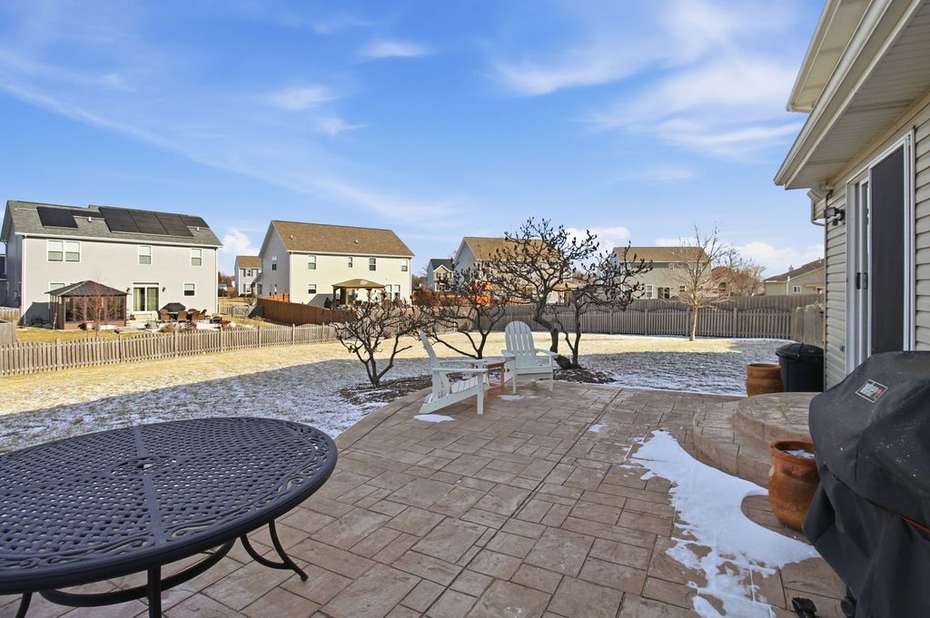 Welcome to Hunter's Crossing! This gorgeous 3-bedroom, 2.5-bath, 3-car garage home is perfectly situated on an extra-large cul-de-sac lot. Enjoy outdoor living in the fully fenced backyard featuring a beautiful pool and deck, ideal for entertaining or relaxing. Inside, the home offers a full basement with 10-foot ceilings, already roughed in for a bathroom, providing endless potential. The kitchen boasts ample counter space, abundant cabinetry, and a pantry closet, making it both functional and inviting. Recent updates include: 2025 - New windows in the Master Bedroom, Office, and Kitchen. 2024 - New garbage disposal; furnace serviced with internal components replaced. 2023 - New pool liner and pump. 2022 - New SS refrigerator, SS dishwasher, and ejector pump. 2021 - New flooring throughout the first floor. Located in the highly regarded Minooka School District, this home is surrounded by parks, playgrounds, trails, rivers, and bike paths. Nearby attractions include Heritage Bluffs Golf Course, Gamechangers Pickleball Courts, Channahon Lanes & Mini Golf, Tomahawk Aquatic Center, Four Rivers Environmental Center, I&M Canal State Park, and a variety of dining options. Schedule your private showing today!