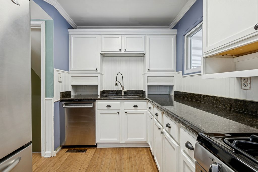 Beautifully 3 bedroom home with 2 full baths.Hardwood floors throughout home, crown molding, wainscoting and architectural arches...Newer roof (2022) on home, all stainless steel appliances stay, 2 car garage has a newer roof. Newer kitchen with white cabinets, granite counters and island. Beautiful park-like fenced yard with screened in patio. Lower level recreation room is beautifully tiled and has concrete crawl for storage and full finished utility/laundry room with full-size washer and dryer. The Furnace, Air Condoning and water heater are all less than 9 years old. Must see! So many extras! Quick close!