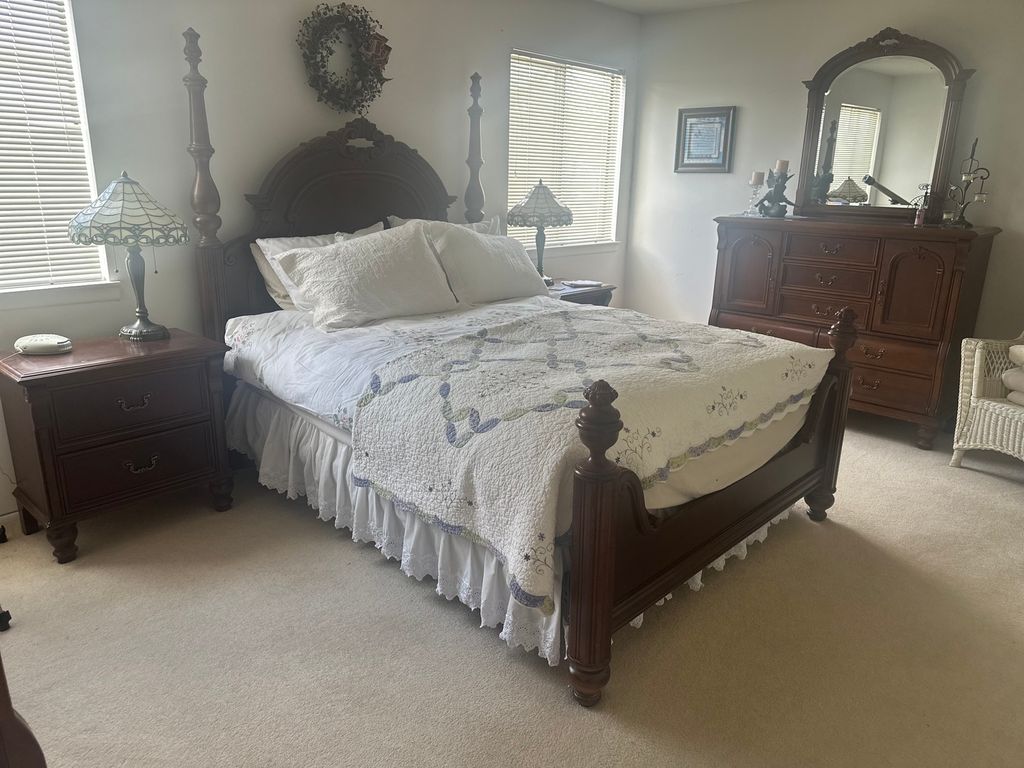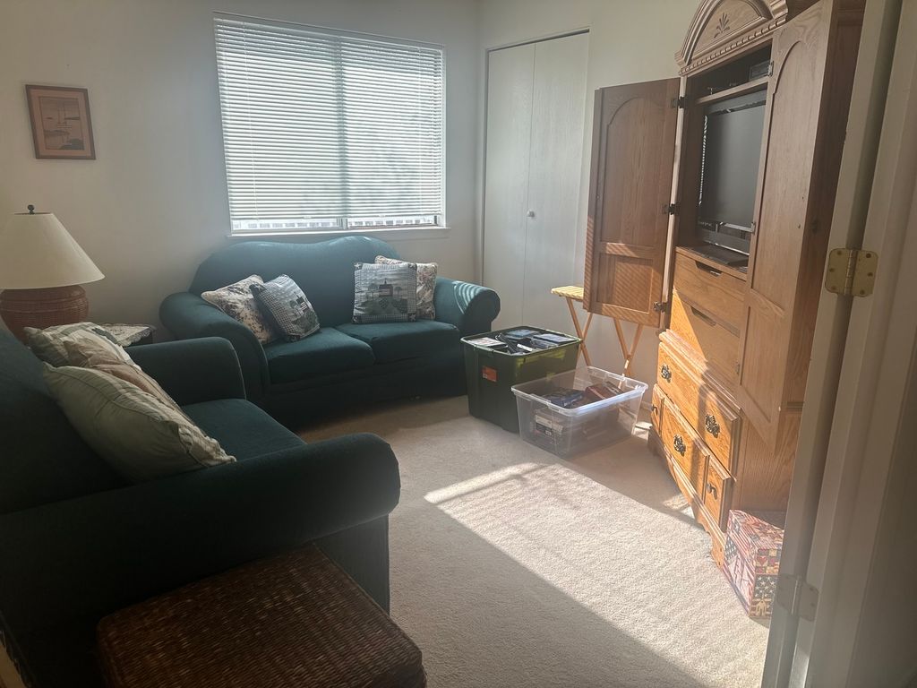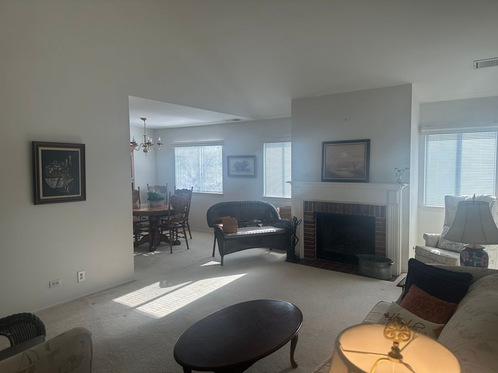 2nd floor unit with cathedral ceilings, fireplace, recently painted, and newer blinds. Big rooms, balcony new furniture stays! Kitchen appliances work, but are older so As IS! Sellers still oving some things out please excuse Some furniture may be able to stay! Convenient location to schools, shopping and Septemberfest! Please excuse things slight mess of going through items