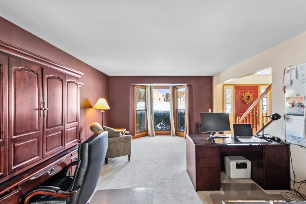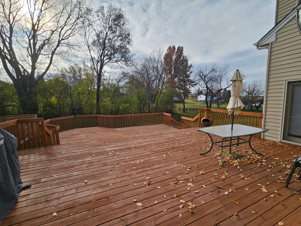 Welcome to this beautiful two-story home on a 1+ acre lot, featuring a spacious layout filled with natural light. The first floor includes separate living and dining rooms perfect for entertaining, along with a cozy den that can serve as a 5th bedroom or home office. The updated kitchen boasts elegant cherry cabinets, a center island with a breakfast bar, and a large walk-in pantry with an adjacent eating area. Beyond this, is a bright sun room filled with windows and skylights inviting you to relax. A convenient butler's pantry provides additional storage and prep space. On the second floor, you'll find four roomy bedrooms, including a spacious primary suite with a sitting area and en-suite bathroom featuring double vanities, a walk-in shower, whirlpool tub & skylights. The finished English basement is ideal for gatherings, complete with a second kitchen, a wet bar for entertaining, and a recreation room perfect for game nights or hobbies. Huge multi level deck, leading to a brick paver patio and a fenced private area to accommodate a hot tub. Other amenities include: walking trails throughout the neighborhood, Burnidge Forest preserve, baseball field and parks mins away.