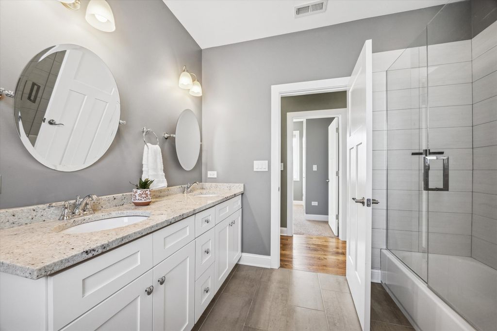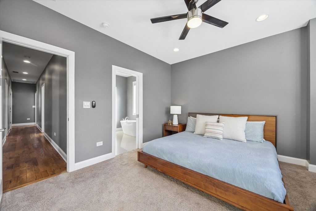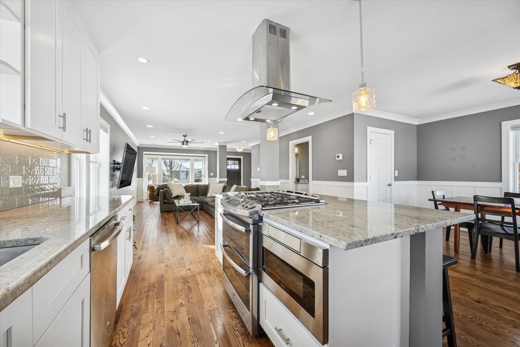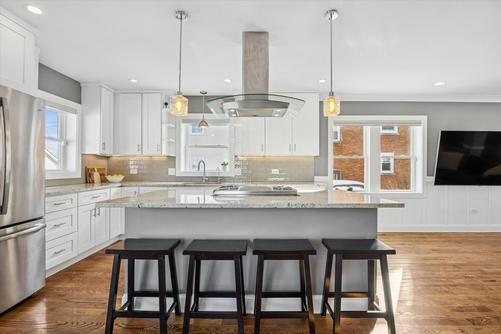 Meticulously maintained and thoughtfully designed, this stunning La Grange Park residence delivers the space, style, and functionality today's buyers seek. All four bedrooms are conveniently located on the second level and offer exceptional closet space, including customized organization in the primary suite and additional bedrooms. Renovated in 2017 and impeccably cared for since, the home feels fresh, polished, and move-in ready. The main floor welcomes you with a bright, open layout highlighted by rich hardwood floors and a seamless flow between living, dining, and kitchen spaces. The crisp, contemporary kitchen anchors the home with 42" soft-close cabinetry, premium stone countertops, an oversized island ideal for casual dining, stainless steel appliances, double ovens, a microwave drawer, and a generously sized pantry. Sliding doors from the dining area lead to a covered 23x10 deck-an inviting extension of the living space-overlooking a fenced yard perfect for entertaining or relaxing outdoors. A convenient powder room completes this level. Upstairs, the primary suite offers a true retreat with a beautifully appointed bathroom featuring a freestanding soaking tub, separate shower, dual vanity with quartz surfaces, and a private water closet. Three additional large bedrooms share an equally impressive full bath with double sinks, while a spacious walk-in laundry room adds everyday convenience. The finished lower level provides flexible living space with a full bathroom, expansive recreation area, and abundant storage-ideal for gatherings, hobbies, or play. Behind the scenes, extensive upgrades provide added confidence, including drain tile, overhead sewer, a brand-new sump pump, tankless water heater, and Energy Star windows. A newer 2.5-car garage with pull-down attic storage adds even more functionality. Ideally situated walking distance to elementary school (right around the corner!), near forest preserve trails, restaurants, Brookfield Zoo, and commuter access to downtown Chicago, and served by top-rated schools including Riverside Brookfield High School, this exceptional home offers both lifestyle and location in one complete package.