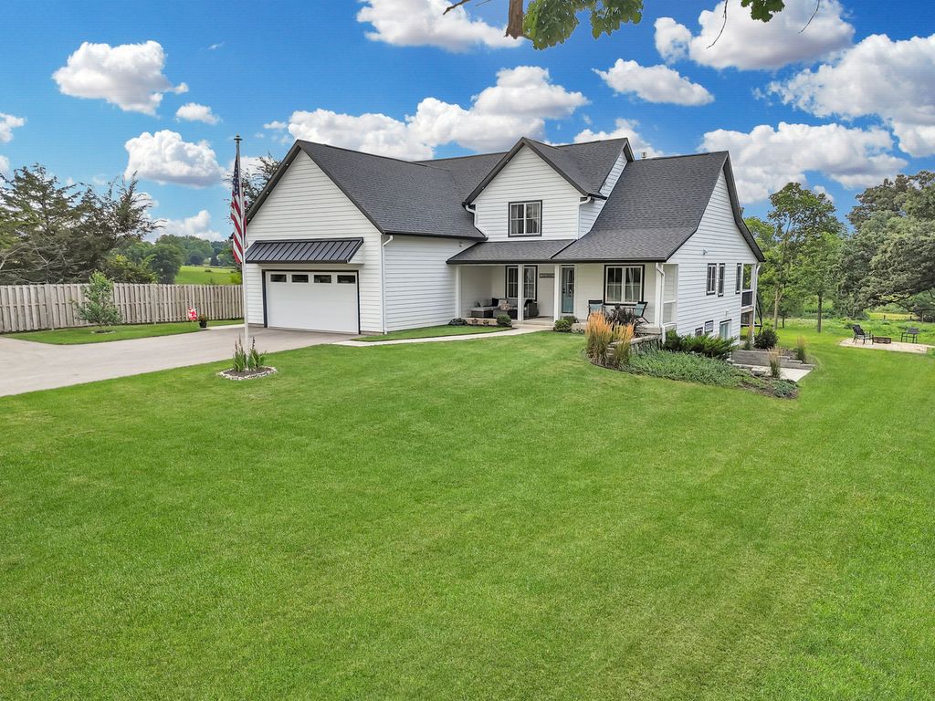 Fabulous Custom Designed Home on 5 Acres-Built in 2021. This remarkable MODERN FARMHOUSE is set on 5 serene acres in rural Stephenson County, offering peace, privacy, and breathtaking views. With approximately 3,800 sq. ft. of finished living space across three levels, every detail was designed for comfort and style. Step onto the inviting porch and into a bright, open floor plan filled with abundant natural light. Elegant yet comfortable finishes create a warm (maple accents throughout) and welcoming atmosphere. The home boasts spacious bedrooms, each with its own walk-in closet, providing exceptional storage. The main living area flows seamlessly for entertaining and everyday living, while the finished lower level offers additional space for recreation or relaxation. A private well and septic system ensure self-sufficiency yet natural gas, and the property's setting captures stunning views in every direction. This is a rare opportunity to own a like-new home with modern craftsmanship (all custom cabinetry), expansive space, and a perfect blend of rural tranquility and refined living. Heated, Finished Attached Garage is 25' x 25' with 10' Ceilings. Shed is 12' x 20' with a loft. Invisible Dog Fencing in place.