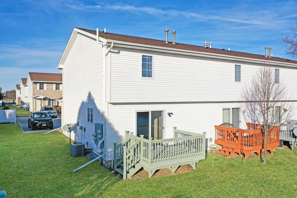 This is a fantastic 2-bedroom, 1.5-bath home in Bloomington offering comfort, updates, and serene views. This well-maintained residence combines functional living spaces with major improvements, making it truly move-in ready. The large living room features hardwood flooring and a cozy gas fireplace, creating a warm and inviting atmosphere. The updated kitchen includes a pantry for added storage, and all appliances remain-including the washer and dryer-adding immediate value and convenience. The lower level offers finished living room space (2020), perfect for a home office or entertainment area. Step outside onto the newer deck (2020) and enjoy beautiful pond views, providing a peaceful backdrop rarely found at this price point. Extensive updates offer exceptional peace of mind, including new AC (2017), water heater (2018), dishwasher, microwave, oven/range, and refrigerator (2020), new furnace (2024), new garbage disposal and sump pump (2025), and a brand-new roof (2025). The property also includes three dedicated parking spaces, a rare and valuable feature. The homeowners association covers all lawn care, snow removal, garbage service, and studs-out building maintenance, making this an ideal option for easy, low-maintenance living. With thoughtful updates, flexible living space, primary bedroom walk-in closet, HOA conveniences, and scenic pond views, this home is an excellent opportunity in a desirable Bloomington location. Schedule your private showing today!