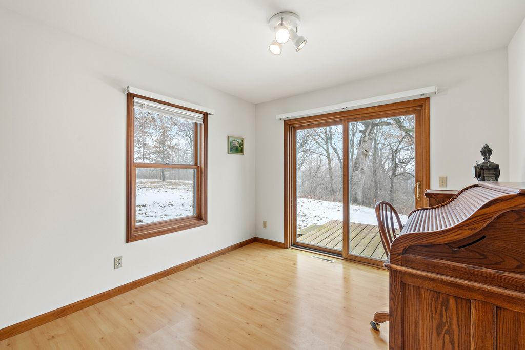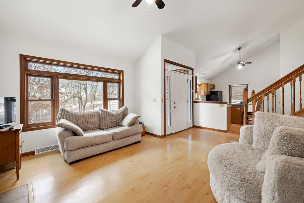 Set on over five wooded acres, this Whitewater retreat offers 3 bedrooms, 2 baths, a bright open-concept living area with vaulted ceilings, and a cozy fireplace. The spacious kitchen flows into a dedicated dining area, and main-floor laundry adds convenience. A large full basement-unfinished but clean, open, and ready to be finished-offers excellent expansion potential beyond the 1,825 sq ft finished. Enjoy quick access to Natureland Park, the UW-Whitewater Nature Preserve, and Kettle Moraine trails, with town amenities and Madison/Milwaukee under an hour away.