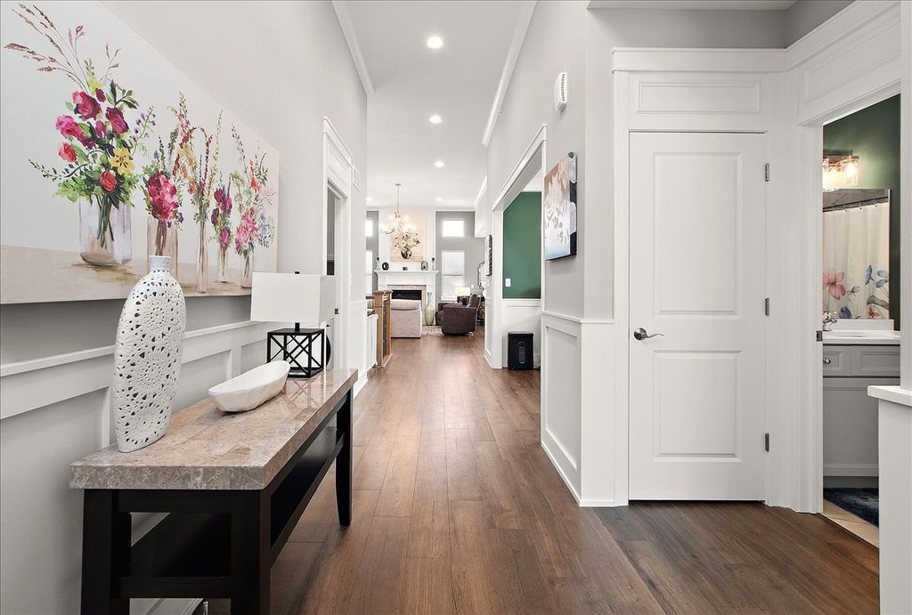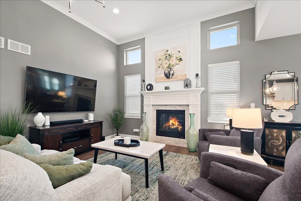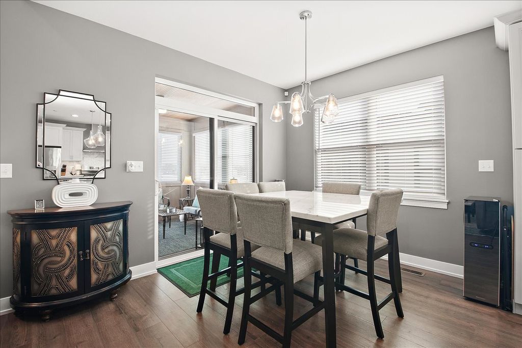 Don't miss this custom duplex townhome that answers many client's desires. End-unit, much like a single family home with 6x7 concrete patio, 144 sq. ft. maintenance free deck and enclosed 12x12, 3-season room! Brick and stone masonry, professional landscaping with sprinklers and concrete driveway. Soaring 12 ft. ceilings with crown molding, decorative lighting and luxury flooring throughout. Beautiful formal dining room or study with coffered ceiling and Judges panel wainscoting. Open concept family room with Heatilator Fireplace and custom mantel. Adjacent dry bar or beverage center with refrigerator, complimentary backsplash and under cabinet lighting. A kitchen so lit...packed with must haves including built-in microwave, stainless appliances, island with seating, backsplash with under cabinet lighting. Primary ensuite with upgrades, features a decorative tray ceiling, walk-in closet, dual sinks, a massive curb-less rain shower and extra linen closet. The bedrooms include ceiling fans and window blinds. Finished, open staircase (complete with wainscoting) to full lookout basement including 2 additional bedrooms, a full bath, a family room and an extra finished room for a workout room, an office or storage. Glamour garage with epoxy finished flooring, base trim and painted walls as well as a fast track hanging system. Pull down attic stairs and hot/cold water add function as well. This home includes a Culligan water softener with an R/O system, invisible fence, Schlage encode Wifi locks, Nest thermostat, Simply Safe alarm system, MyQ garage door opener with exterior keypad. Close proximity to downtown Lockport's shopping, dining, METRA and I-355. Schedule a time to see this in person, you won't regret it!