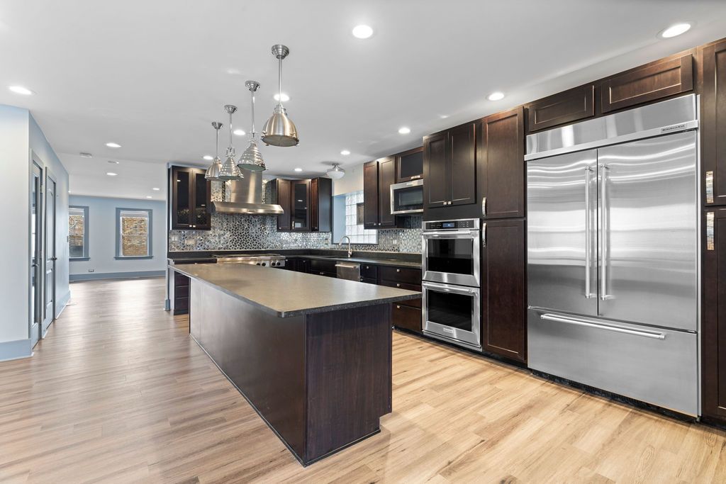 This stunning all-brick two-story home, renovated in 2018, blends timeless elegance with modern convenience. Featuring 4+1 bedrooms and 3 full baths, every space has been thoughtfully updated and maintained. Inside, the heart of the home is the bright, open eat-in kitchen, including a pantry closet, oversized island with seating for six, polished granite countertops and top-of-the-line stainless steel appliances-including a double oven, wide-range cooktop, large side-by-side refrigerator, beverage cooler, dishwasher, and microwave. Adjacent to the kitchen, the inviting living room showcases a cozy gas fireplace and stylish wet bar, while the spacious family room with a second gas fireplace offers the perfect gathering space. A full bath with a Jacuzzi tub and double vanity completes the main level. Upstairs, the primary suite is a true retreat, featuring a spacious sitting room, a third gas/electric fireplace, and a hidden bonus room perfect for a private office or cozy reading nook. The second level also offers three additional comfortable bedrooms, two of which open directly onto a private balcony. A second full bath and a convenient 2nd fl laundry area complete the upper level. The finished walk-out basement is an entertainer's dream and doubles as a flexible space for an in-law suite or multi-family living. It offers a spacious recreation area with a bar, a versatile bonus room ideal for a gym, playroom, or office, plus a fifth bedroom, full bath, and private theater room. From here, step directly outside to your backyard oasis, where a stamped concrete patio awaits with a built-in grill and smoker (both included). The detached 2-car garage adds even more versatility with a rooftop deck and exterior carport, perfect for outdoor entertaining, relaxing, and additional parking for up to 2 more cars. Additional highlights include dual AC systems, dual furnaces, and dual tankless water heaters, a new roof (2019), luxury vinyl plank flooring on both the first and second levels (2024), fresh paint (2024), and updated windows (2018/2019).