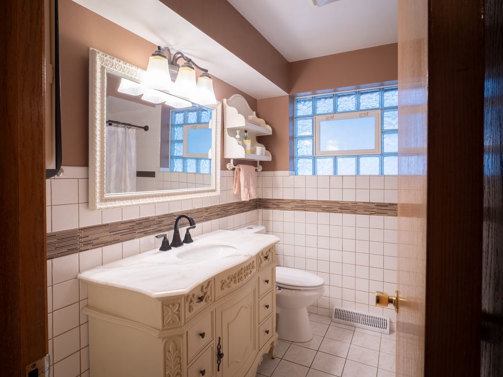 Jefferson/Norwood Park raised ranch with a hard to find attached garage has approximately 2,200 sq ft of finished living space! Living room has bay picture window, recessed lighting, crown moulding & expansive hardwood floors that carry over to the hall and bedrooms. There are 3 bedrrooms and a full bath on the main level. Kitchen has skylight, maple cabinets, granite countertops with under mount sink & free standing island. It features a dining area overlooking the garden through a bay window. Lots of storage with an abundance of cabinets and a pantry closet.The 3rd bed room features glass sliding door that leads to an enormous wood deck overlooking a perennial garden of roses and wide assortment of flowering plants & vegetables. With a full size washer and dryer on main floor, everything you need is conveniently set up on one level. And there's more living space in the basement: a 2nd full bath, full size washer & dryer, utility tub, an open area for entertainment and 2 bonus rooms! With closets and cabinets & a designated utility room, there's endless areas for storage throughout. There's crawl space storage by the exterior doors are great for seasonal decor. More extra storage in the barn as well for all the garden essentials. The garage has loft storage also and a side door access. The concrete drive that has side by side space for 2 cars.This lovely home is loved and taken cared of by the owners of 30+ years.