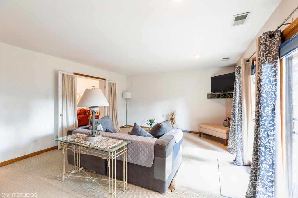 Welcome to this beautifully maintained 2-story home featuring 3 comfortable bedrooms, including one conveniently located on the main floor-perfect for guests or a home office. With 2 full bathrooms and thoughtful updates throughout, this home blends function and style effortlessly. Step into the inviting living room where vaulted ceilings and a stunning bay window fill the space with natural light. The updated, eat-in kitchen offers plenty of room for meals and gatherings, boasting modern finishes and ample cabinet space. Enjoy the ease of main-floor laundry and appreciate the comfort of a well-designed layout that supports everyday living. Outdoors, you'll find a fully fenced backyard ideal for relaxing or entertaining, complete with a large deck and beautiful paver patio. This home is move-in ready and offers a rare combination of space, updates, and charm-don't miss it! Located just a short distance from the downtown area and Metra station ***Home updates- Furnace 9 yrs, A/C 5 yrs. Roof 3 yrs. Siding 9 yrs with lifetime transferrable warranty. Dishwasher less than 1 year. Some interior rooms have been painted this month and 2nd level carpet was installed within the last few years. The Living Room and Family Room are wired for surround sound!