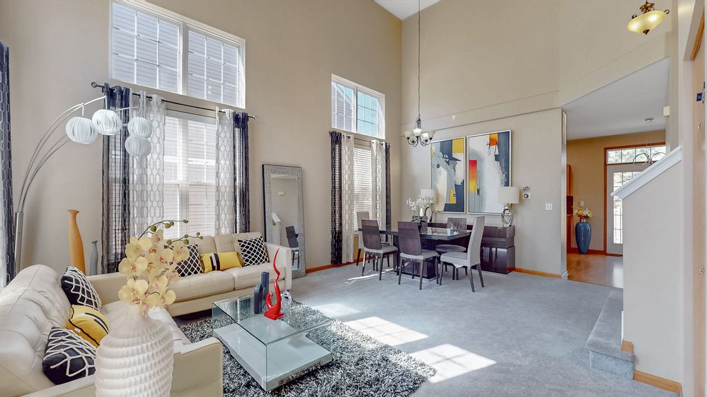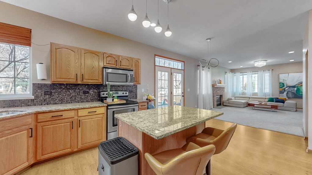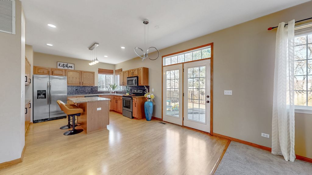 Welcome home to 2500 Rosehall Lane, a stunning 4-bedroom, 3.1-bath residence offering 2,858 finished square feet of meticulously maintained living space in the highly acclaimed Oswego SD308. The main level greets you with soaring vaulted ceilings in the formal living and dining rooms, creating an expansive, sun-drenched atmosphere. The gourmet eat-in kitchen is a chef's delight, featuring granite countertops, a central island, elegant tile backsplash, and stainless steel appliances. Escape to the upper level, boasting brand-new carpet and a freshly painted interior in modern, neutral tones. The massive primary suite serves as a true retreat with a private full bath and a spacious walk-in closet. An open loft provides the perfect footprint for a home office or second family room. The fully finished basement maximizes your living area with a large recreation room, a private 4th bedroom, and a third full bathroom-perfect for guests or a teen suite. Outside, enjoy the privacy of a fully fenced backyard and host summer gatherings on the premium paver patio. Conveniently located near shopping, dining, and parks. This turn-key gem combines modern updates with an unbeatable floor plan. Schedule your showing today! Roof new in 2023, new dryer 2025