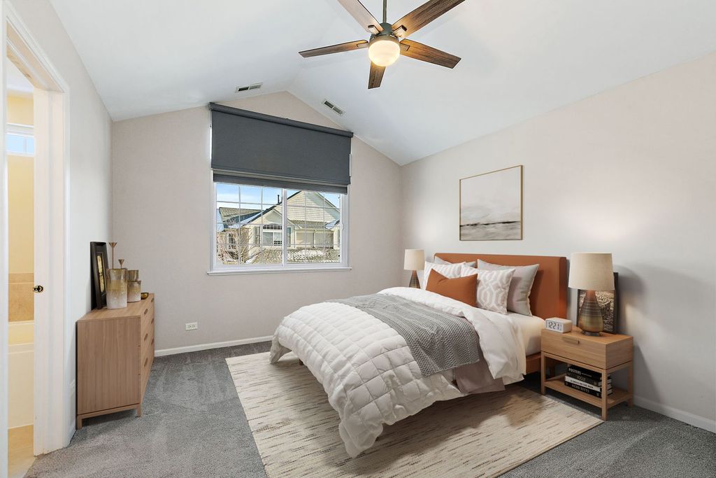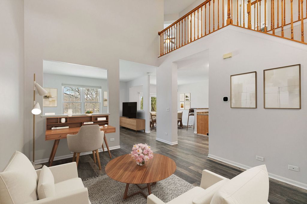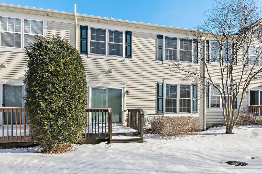 Bright natural light pours through all-new windows and a newer sliding glass door, enhanced by custom blinds throughout, highlighting a comfortable layout and thoughtful features in this inviting home, ideally situated backing to open green space and a wooded area. On the first floor, a welcoming two-story foyer opens into a versatile living room space, creating an airy and open first impression. The kitchen offers plenty of cabinet space and flows into the dining room, with both the kitchen and dining areas opening up to the family room for easy everyday living and entertaining. A powder room completes the main level. Upstairs, the second floor features a primary bedroom with an ensuite bathroom, along with two additional bedrooms. The ensuite includes a separate tub and shower, offering both relaxation and functionality. The laundry room includes a washer and dryer, along with a convenient mini washer pull-out drawer for smaller loads. The unfinished basement provides excellent storage or future finishing potential and includes a sump pump and a radon mitigation system already in place. An extra refrigerator/freezer adds convenience, while the garage features a newer epoxy floor and is equipped with two Tesla chargers (negotiable), supported by a newer 200-amp electrical panel. Ideally located near parks and forest preserves, with quick access to I-90, this home combines comfort, efficiency, and location. Windows (2023), water heater (2023), new electrical 200 amp panel (2024), new epoxy garage floor (2025).