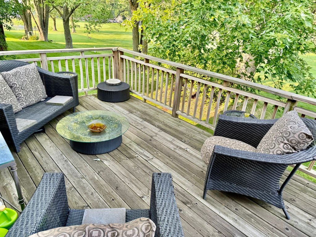 ENJOY THE GOLF COURSE VIEW & FUN FROM YOUR OVERSIZED BACKYARD DECK! Welcome home to your 3-bedroom, 3.5 bathroom attached duplex townhouse with a 2-car attached garage. Walking through the front door is custom hardwood flooring with accent in-lay parameter that continues all through the living room - dining room kitchen & 1/2 Bath. The large kitchen has tons of cabinets, quartz countertops and stainless-steel appliances WITH LARGE ISLAND THAT HAS EXTRA SEATING. Separate Dining room area that has been opened up to the living room where you will find 18' high ceilings with an opening to look down from the second level hallway. Sliding glass patio door leads out to your extended deck that looks out to the golf course. Second floor has The master bedroom with newer carpet, 2 closets and updated en-suite with newer tile flooring and double shower with bench seating. The second bedroom has newer carpet and double closet. There are two linen closets in the hallway for extra storage leading to the 2nd full bath. The third bedroom has newer carpet and two closets. The finished basement can be used for a family room with another full bath & stackable front load washer & dryer. Updates include- newer carpet on the 2nd floor, the house has been freshly painted interior 20', Furnace 23', Quartz countertops 19', washer and dryer 20', stove-microwave-dishwasher 19', fridge 24'.. Schedule your showing today to see this townhouse and the view from your back door. Close to shopping - interstate access - parks & NIU!!