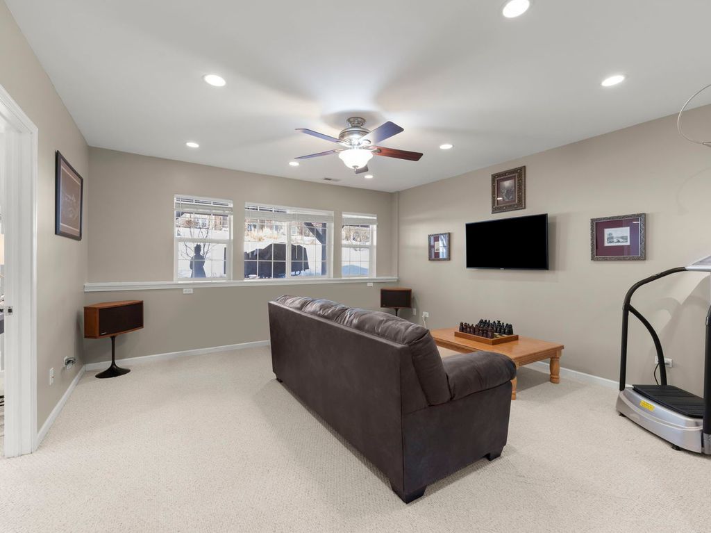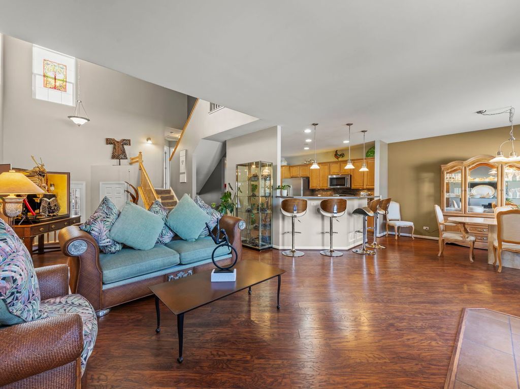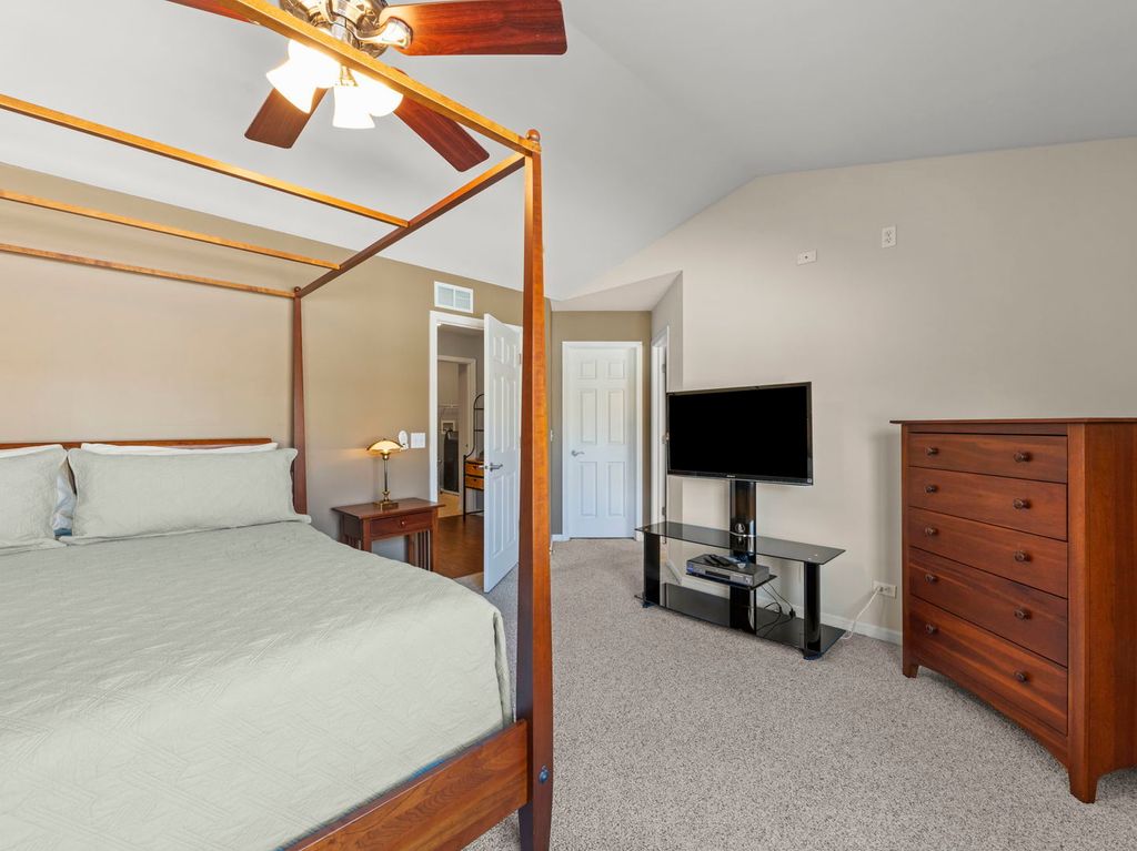 Welcome Home to River Mist on the Fox! Experience refined living in this stunning luxury townhome, where elegance, comfort, and scenic views come together seamlessly. The inviting foyer opens to soaring vaulted ceilings, rich wood laminate flooring, a striking fireplace, and expansive windows overlooking a tranquil stream. The chef-inspired kitchen features stainless steel appliances including a convection microwave, ample cabinetry, and a breakfast bar ideal for entertaining. Step outside to the 15' x 12' composite deck, designed for durability and offering beautiful, peaceful views. The upper level includes a spacious primary suite with ensuite bath and walk-in closet, plus the convenience of an upper-level laundry room. The English basement offers a bedroom suite or office with a full bath, family room, and wet bar-perfect for entertaining or extended living. Recent upgrades include new HVAC and A/C (2023) and a new hot water heater (2024), along with premium features such as a water softener, sump pump battery backup, and interlocking garage floor tiles. Ideally located near the Fox River, Millstone Park, and minutes from downtown Oswego, this impeccably maintained home offers luxury, lifestyle, and location!