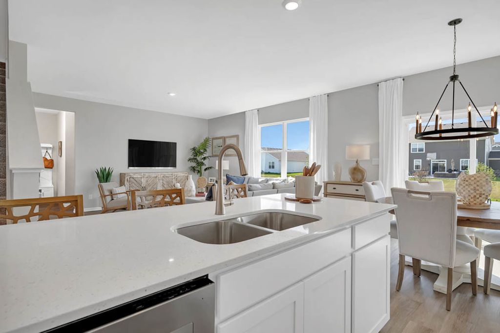 Prepare to be wowed at 2631 Camelback Drive in Pingree Grove, Illinois, a beautiful new home in our Cambridge Lakes North community. This home will be ready for a summer move-in. You will be greeted by a full front porch with stone accents, front landscaping and a fully sodded yard. The Henley plan offers 2,600 square feet of living space with 4 bedrooms, a loft, 2.5 bathrooms and a 1st floor flex room. Entertaining will be easy in this open-concept kitchen, dining and family room layout with a large island with overhang for stools. Additionally, the kitchen features a walk-in pantry, modern stainless-steel appliances, quartz countertops, and easy-to-maintain luxury vinyl plank flooring. For everyday ease, enjoy coming home to a large mud room right off the garage which also leads to a huge, 1st floor walk-in storage closet. Plus, the 1st floor flex room offers space for an office, playroom, or create a formal living or dining room! As you head upstairs, you'll first notice even more flexible space waiting in the 2nd-floor loft, offering unlimited potential like a movie room, 2nd family room, playroom or study/work area. Escape to your private getaway in your large primary bedroom and en suite bathroom with dual sinks, quartz top vanity, and walk-in shower. Convenient 2nd floor walk-in laundry room, 3 additional bedrooms with a full second bath and a linen closet complete the second floor. Need more space? This home also includes a full basement, blanket wrapped in insulation. Impressive efficiencies like the ERV furnace system and tankless water heater round out the amazing features this home has to offer! Our Chicago home includes our America's Smart Home Technology. Builder Warranty 1-2-10 is included. Photos are of a similar home. Actual home built may vary.