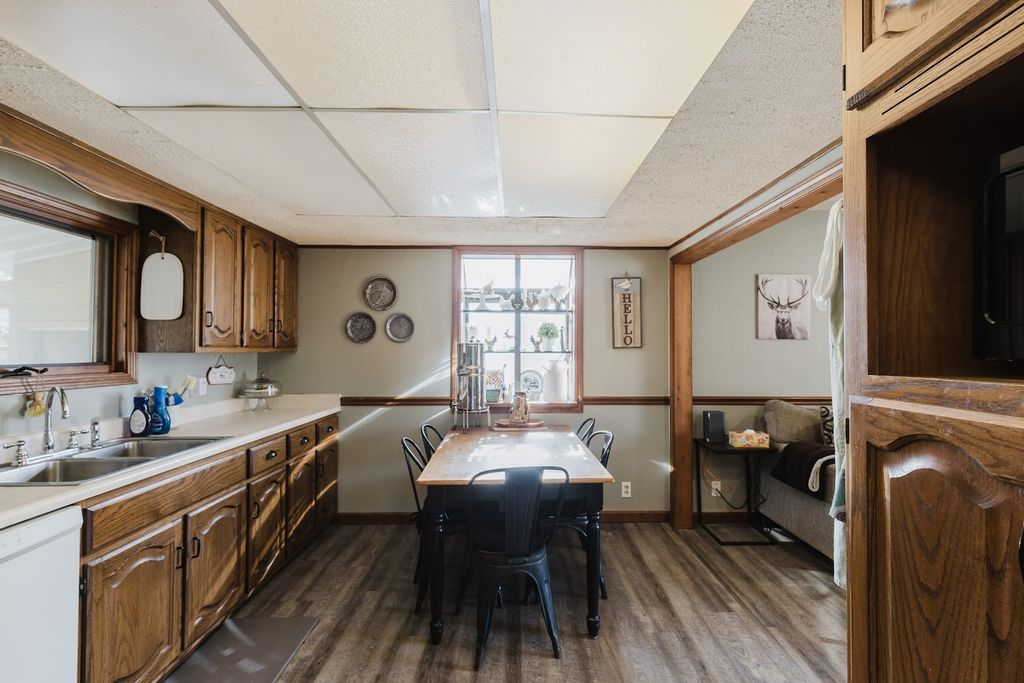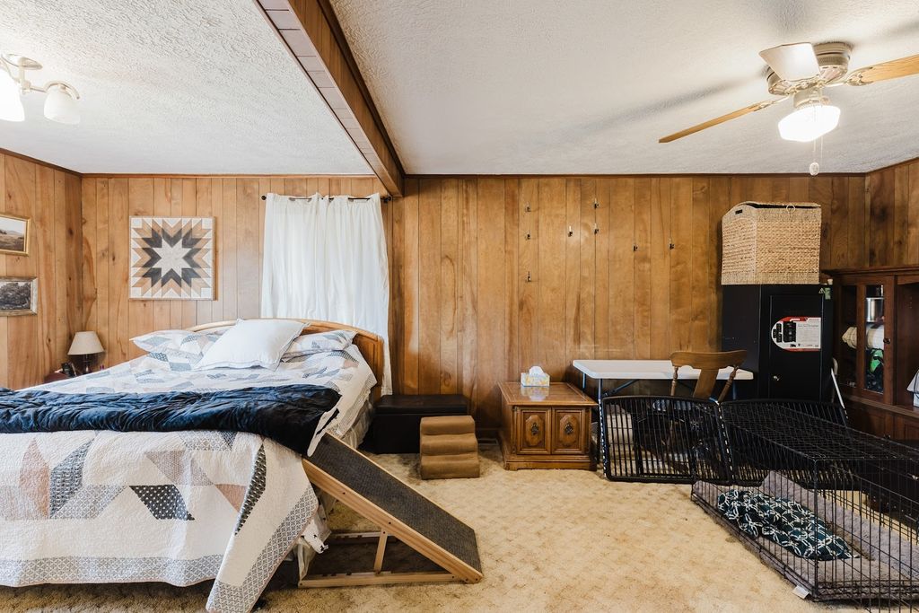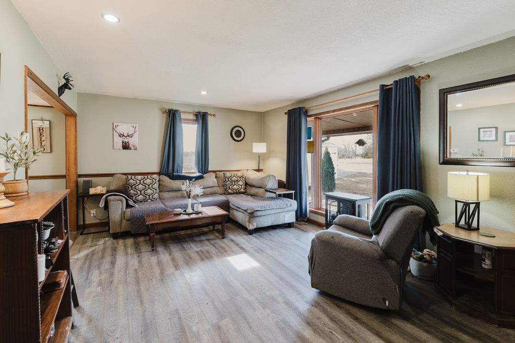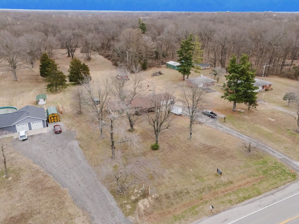 Charming 2-3 Bedroom Ranch on Approximately 5 Acres offering privacy, space, and versatile outdoor amenities. This home features generous living areas with vinyl plank flooring in the living room and kitchen. Down the hallway are two bedrooms with ample closet space, two full bathrooms, and an additional large room currently used as the primary bedroom, complete with a cozy gas fireplace. Out the back door you will find a sunroom that leads to the exterior and a laundry room which leads to the garage. Step outside to enjoy the expansive backyard, perfect for relaxing or entertaining, featuring a hot tub on a concrete pad installed in 2021. The property includes a chicken coop, pear trees, grapevines, and plenty of room for recreational use, including a potential shooting range. Additional highlights include a partial basement ideal for storage or storm shelter with a sump pump, and a professionally encapsulated crawl space. Major updates include a new aerator installed in 2020 (Baker's Plumbing), roof replacement around 2019, new air conditioner in 2024, and a gas furnace approximately 10 years old. A rare opportunity to enjoy country living with modern updates and room to grow.
