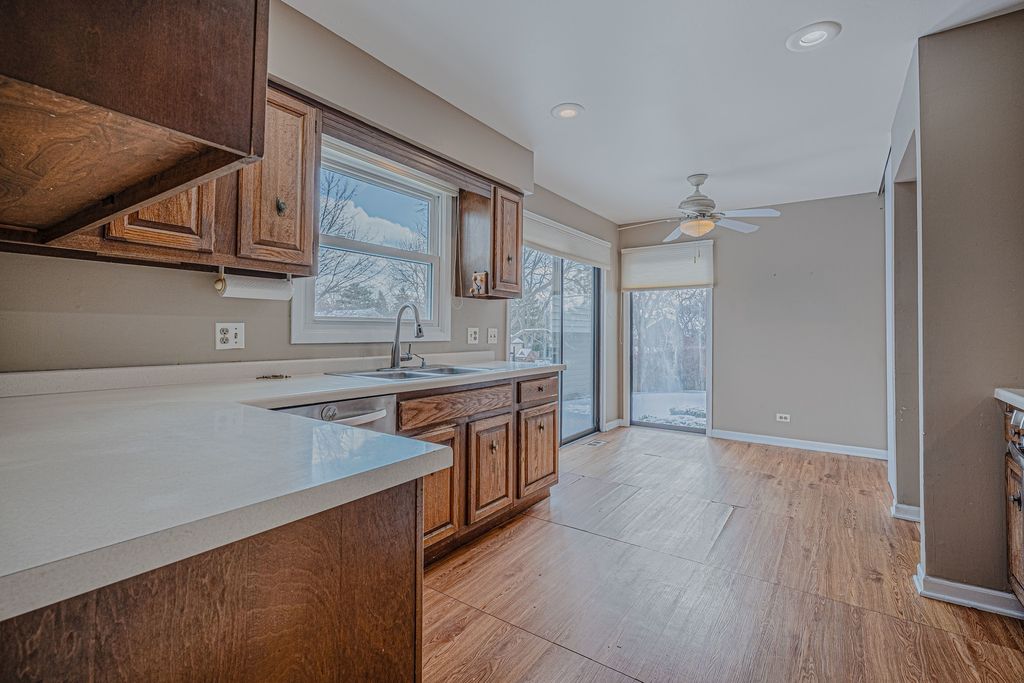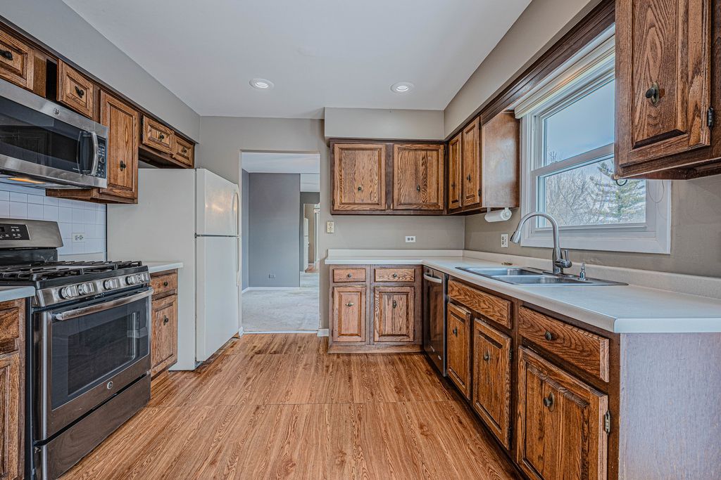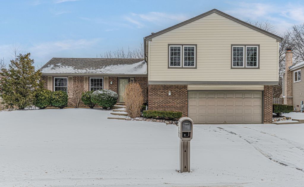 This split-level home is attractively located in the desirable and rarely available Countryside subdivision only five minutes drive from the shopping, dining, and green space of downtown Lake Zurich. Enter through the front door into an entryway with hardwood floor and convenient coat closet and continue into a bright living space with large double-hung windows. Newer vinyl windows on the front of the house. Continue into an adjoining dining space with sight lines to the kitchen. The kitchen features a pantry closet for additional storage space, eat-in space, and sliding door access to the backyard patio. Go up to the bedrooms on the upper level. The primary bedroom has a full ensuite bathroom and good closet space. Large secondary bedrooms. The lower level family room features a fireplace with brick surround. Full, finished basement. Attached two-car garage. Cinderblock fire pit in backyard. Opportunity to increase value with cosmetic upgrades. Selling as-is.
