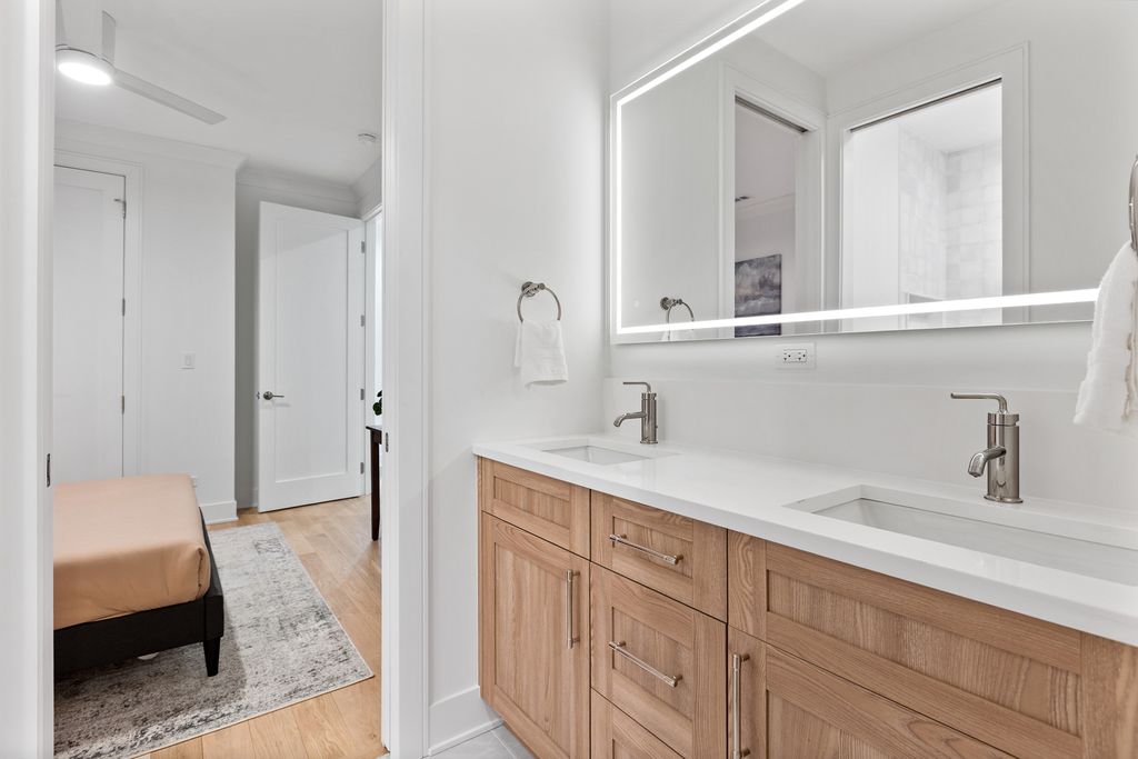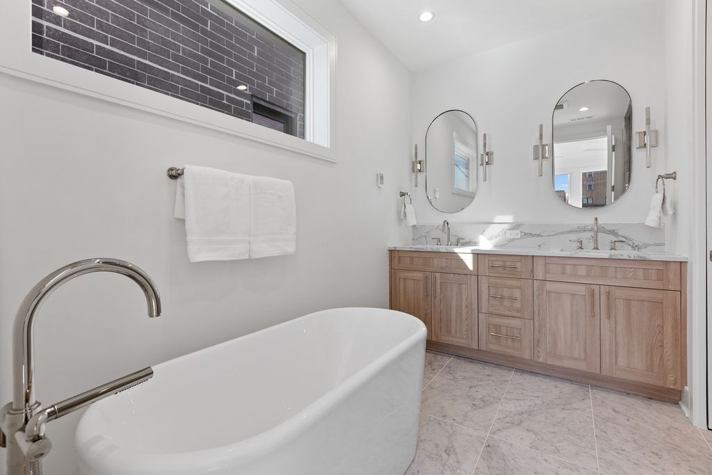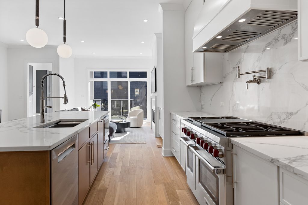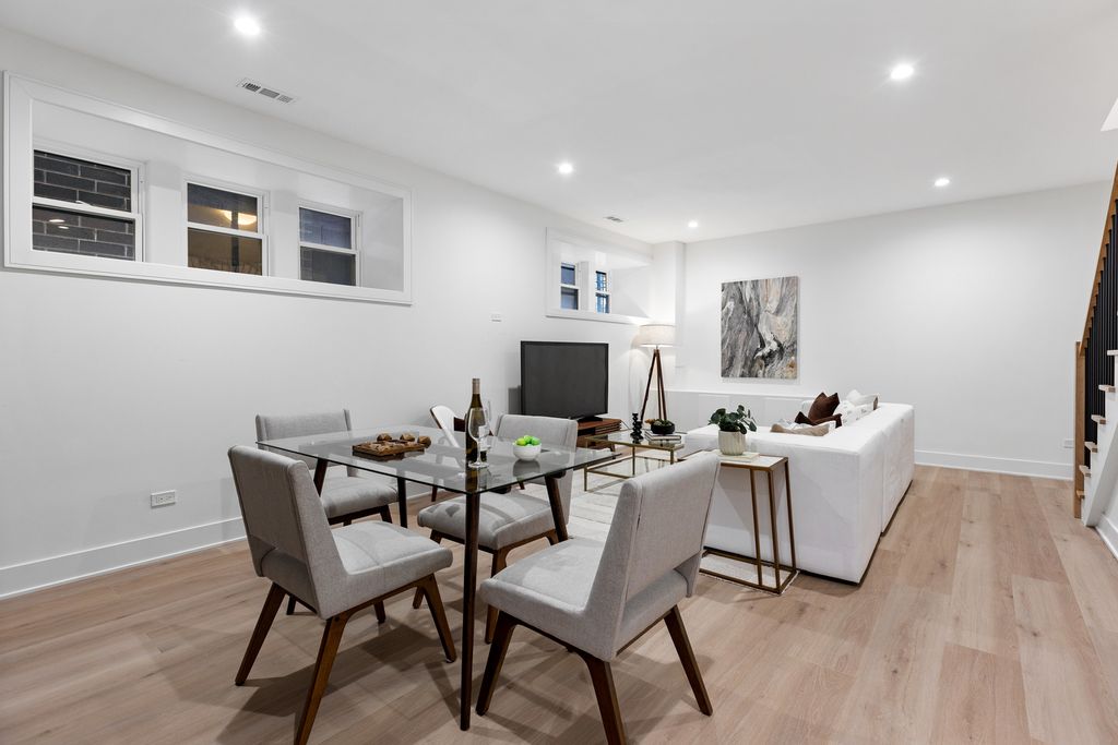 Nestled in the heart of North Center, this exquisite full gut-rehab is now complete! Located within the highly sought-after Coonley Elementary and Amundsen High School districts, this 6 bedroom, 4.2 bathroom residence spans three thoughtfully designed levels, with all new interiors within an ultra wide floor plan offering exceptional space for living and entertaining. Step inside to 10' ceilings welcoming you into an inviting living and dining area, ideal for both intimate gatherings and larger celebrations. The kitchen is a chef's dream, featuring a 48" Wolf range, Sub-Zero refrigerator, quartz countertops, custom white cabinetry, and a striking white oak island. A butler's pantry, wet bar, coffee bar, and built-in banquette seating add both style and function. Flowing seamlessly from the kitchen, the spacious family room is anchored by a sleek gas fireplace and custom built-ins, with direct access to the back deck-perfect for indoor-outdoor living. A well-equipped mudroom and a stylish powder room complete the main level. Upstairs, the second floor hosts four spacious bedrooms and three full baths, including the luxurious primary suite, a serene retreat featuring dual walk-in closets and a spa-like bath with a dual vanity, rain/steam shower, and a separate soaking tub. The second bedroom enjoys a private en-suite bath, while the remaining two share a Jack-and-Jill bathroom. A convenient second-floor laundry room adds ease to daily living. The fully finished lower level with 9' ceilings throughout is designed for relaxation and entertainment, featuring radiant-heated luxury vinyl plank floors, a wet bar, and a large rec room. Two additional bedrooms share a Jack-and-Jill bath, while an extra half bath adds to the home's functionality. Outside, enjoy summer evenings in the private backyard or on the rooftop deck of the newly built two-car garage. Just steps from the riverwalk path and Welles Park plus top-rated restaurants & bars like Kraken Sushi & Gideon Welles, Lincoln Square boutique shopping, and recreational hubs like Lil' Kickers, IK Gymnastics, and Goldfish & Big Blue Swim Schools, this home offers the ultimate urban lifestyle in one of Chicago's most desirable neighborhoods.
