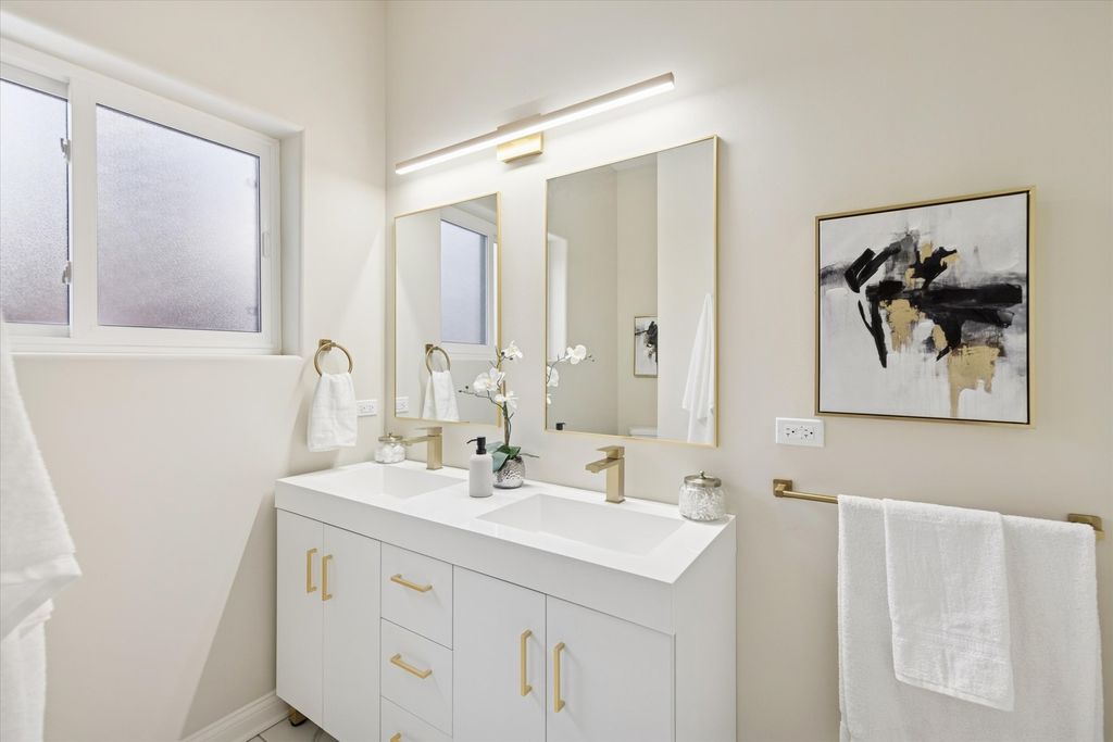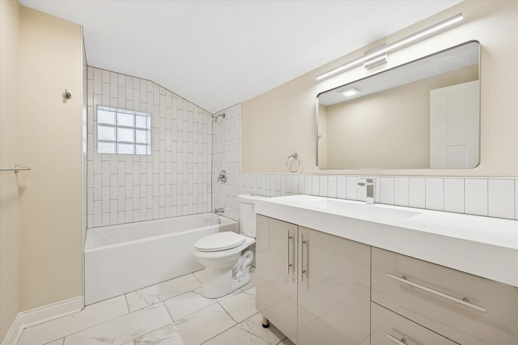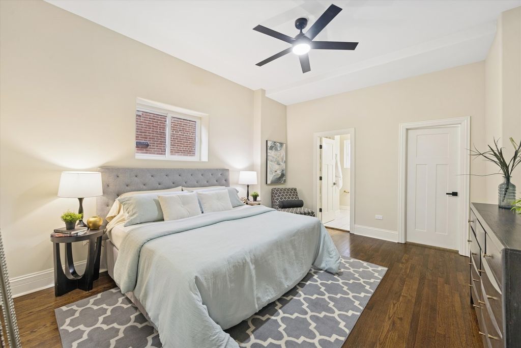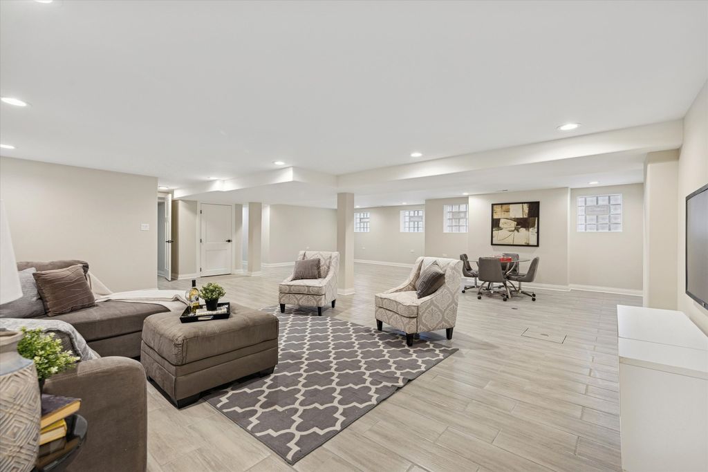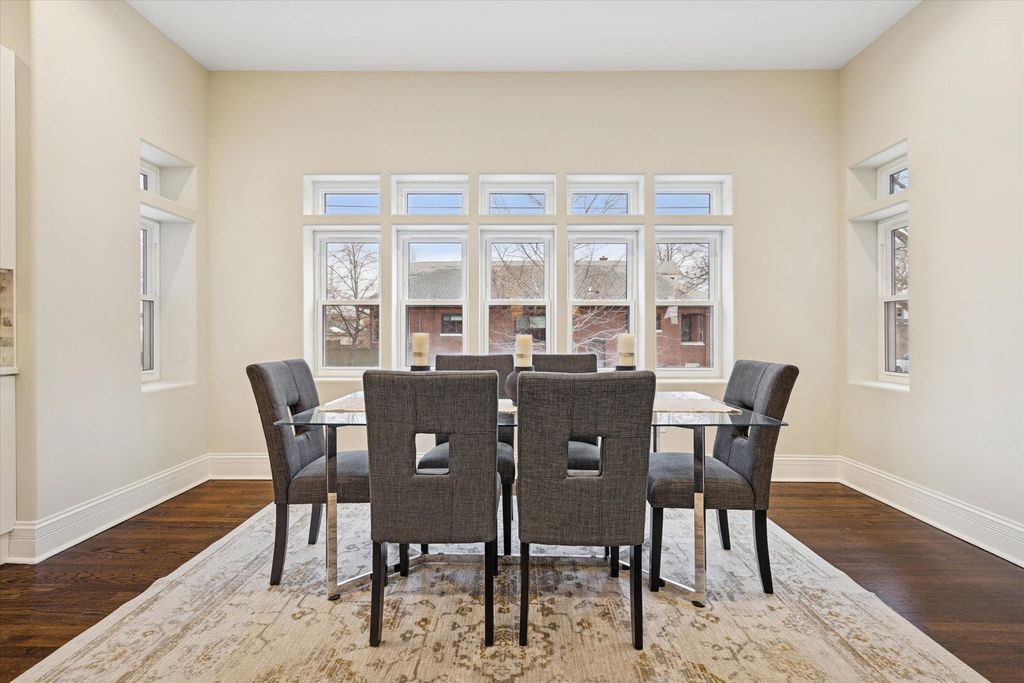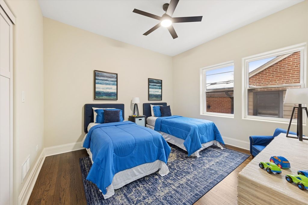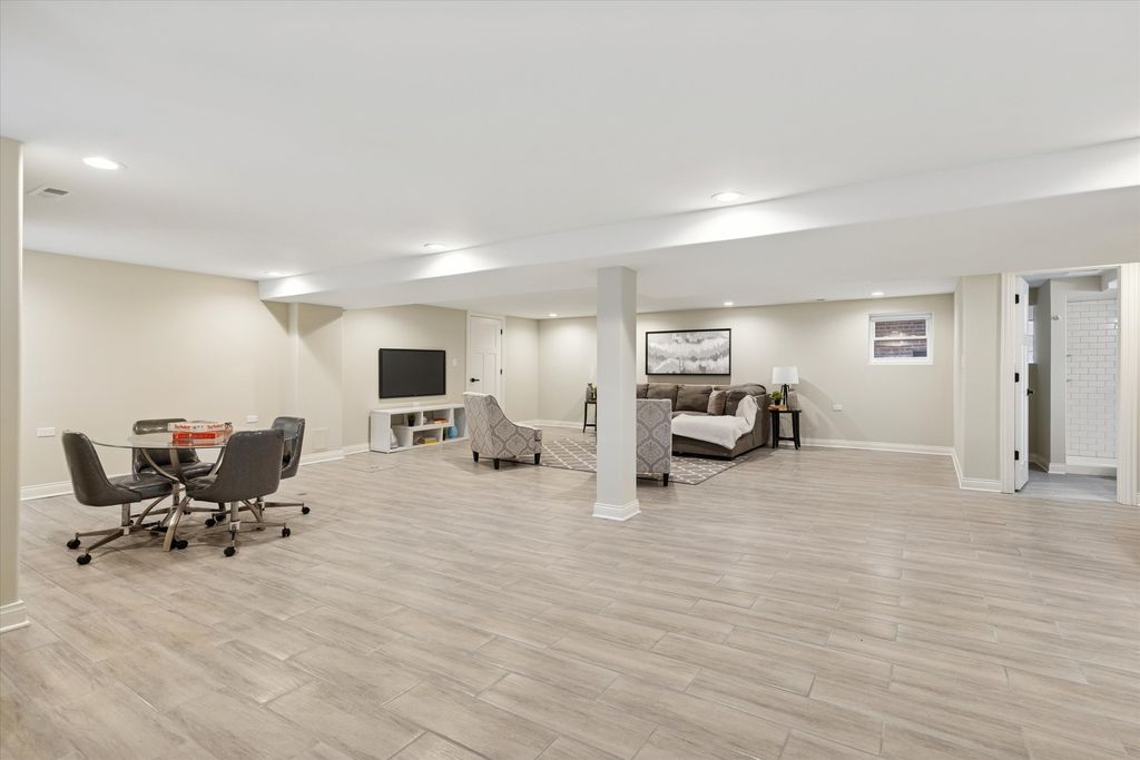 Meticulously Renovated 1920's Craftsman 5 Bedrm 4 Bath Bungalow located in prime Beverly location surrounded by a rich mix of architectural styles. It includes timeless home designs such as a 30-foot covered Front Porch, long overhanging eaves, and a broad band of windows across the front. Step into the Grand Living Room. featuring an original fireplace flanked by 2 original stained-glass windows. 10-foot ceilings and hardwood floors span the main level, highlighted by a first-floor primary ensuite offering a spa-like bath with dual sinks, Carrara marble shower, and an expansive walk-in closet. The inviting custom kitchen showcases 42" white Shaker cabinetry, quartz countertops, Samsung Bespoke appliances, a striking recycled-glass backsplash, and an impressive 10-foot center island-perfect for everyday living and entertaining. A refined staircase leads to the second level featuring two additional bedrooms with walk-in closets and a beautifully designed third bath with dual sinks and a soaking tub. The fully finished 1,600-sq-ft basement expands your living space with an enormous family room, fifth bedroom, and a generous flex room ideal for a home office, gym, or playroom. Updates include: windows, roof, high-efficiency HVAC, plumbing, electrical, doors, trim, hardware, carpeting, recessed lighting, and a basement check valve. The restored and tuck-pointed brick exterior is complemented by an updated front walkway, professional landscaping, and a picture-perfect backyard with a privacy fence a brick paver patio.& a refreshed brick two-car garage. Unbeatable location near top-rated schools, parks, and shopping, with a short walk to the Metra for easy commuting. A true gem-welcome home. Additional Photos being Posted 1/26