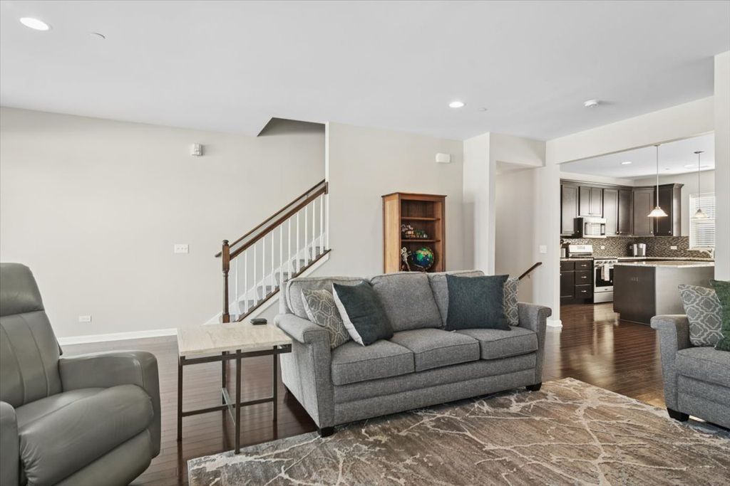 Experience refined living in this beautiful 3-bedroom townhome with two full and two half baths, perfectly located along Breezewald Park with scenic lake views in the heart of Lake Zurich. This desirable end-unit offers a charming front porch, private entrance, and a bright, open interior with stylish finishes throughout. The main level features a spacious family room with 9-foot ceilings, direct access to the two-car garage, plus a laundry room and half bath. Upstairs, enjoy sun-filled living spaces with hardwood floors, recessed lighting, and balcony overlooking the park and lake. The stunning kitchen showcases espresso cabinetry, quartz countertops, glass tile backsplash, stainless steel appliances, and a breakfast bar, with a generous eat-in area opening to an expansive balcony, perfect for entertaining. The upper level includes a serene primary suite with lake views and a full bath, along with two additional bedrooms sharing another full bath. An exceptional layout, beautiful finishes, and an unbeatable location with Lake Zurich right in your backyard, boating, fishing, summer concerts, and top-rated schools. Don't miss your chance to call this luxurious townhome your own! Schedule your showing today!