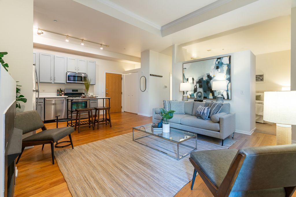 A stylish lofted 1 bed + den that lives like a true 2 bedroom in the heart of the Loop. PREMIUM PARKING SPACE INCLUDED! Open-concept layout with private balcony, gas fireplace, and high ceilings. Spacious den functions perfectly as a second bedroom or office. Updated kitchen with stainless steel appliances and painted cabinetry. In-unit washer/dryer makes this cozy home complete and move-in ready. Full-amenity building with fitness center, business center, rooftop deck, and storage. Steps to River North, the Lake, dining, theaters, shopping, and CTA. Come see it before it's gone!