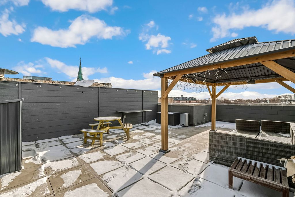 Light-filled penthouse unit in boutique elevator building | This top-floor residence delivers the space, flow, and flexibility today's buyers are looking for. An open living and dining area with soaring ceilings and oversized windows sets an easy rhythm for everyday life - from quiet mornings to hosting with ease. The kitchen is both polished and practical, featuring Sub-Zero, Wolf, and Bosch appliances, quartz countertops, generous prep space, and storage designed to keep life organized. Three generously-proportioned bedrooms allow the layout to evolve over time, complemented by in-unit laundry and high-end designer finishes throughout. The primary suite offers a calm retreat with a walk-in closet and a beautifully finished bath. Three outdoor spaces extend the living experience, including a deck off the main living area and a stunning, private rooftop deck with pergola; perfect for morning coffee, evening unwinds, or casual gatherings under the city sky. Additional highlights include heated garage parking for two vehicles, extra storage, and newer all-brick construction in an intimate, well-run building. Ideally positioned along the Lincoln corridor and part of the award-winning Burley Elementary School district - dining, shopping, transit, and neighborhood amenities are just steps away. This home offers a rare balance of convenience and comfort. See how effortlessly this space fits your life. This is a home that grows with you. Schedule your private showing today.