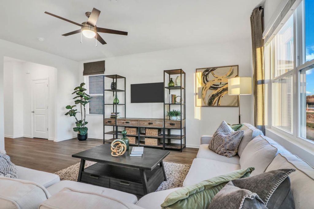 Check out 1251 Acadia Circle in Pingree Grove, Illinois, a beautiful new home in our Cambridge Lakes North community. This home will be ready for an early Summer move-in! This homesite includes a fully sodded yard and back patio. The Sloan plan offers over 1,900 square feet of living space with 4 bedrooms and 2.5 baths. Enjoy this open concept home with natural light throughout your main level. Coming through your front door you'll find your powder room and coat closet in your foyer. The great room, dining room, and kitchen flow effortlessly together, making it your home the perfect entertainment space. Your kitchen features cabinetry with quartz countertops, and a pantry. Walking upstairs you find your private oasis with your primary bedroom on its own side of the top floor complete with an en suite bathroom complete with a raised dual quartz vanity and walk in closet, and linen closet. Enjoy the convenience of a top floor walk in laundry room and all secondary bedrooms upstairs with a full second bathroom with a dual vanity and linen closet. Luxury vinyl plank flooring throughout the main level living space, bathrooms, and laundry! Impressive innovative ERV furnace system and tankless water heater round out the amazing features this home has to offer! All Chicago homes include our America's Smart Home Technology. Photos are of similar home and model home. Actual home built may vary.