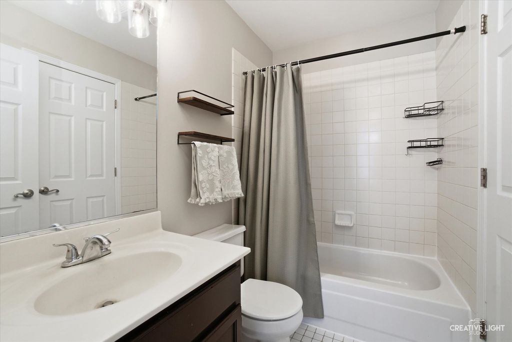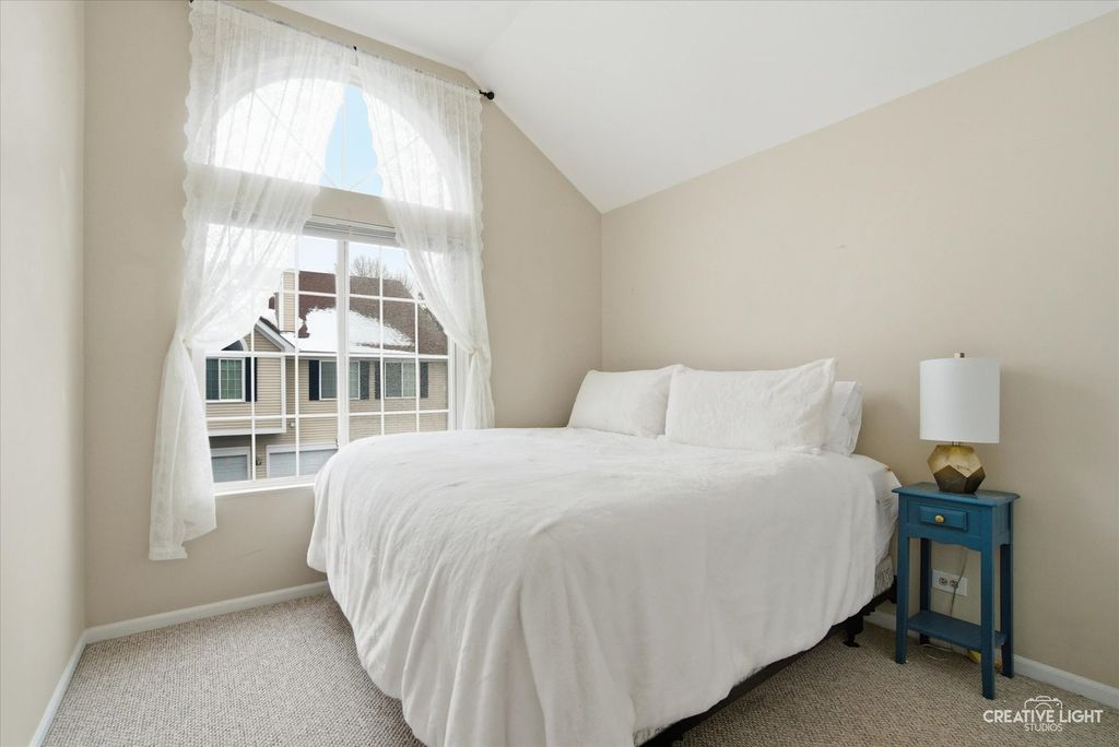 Bright and welcoming 2-bedroom, 1-bath second-level end-unit ranch condo with a private front entrance and 1-car garage, ideally located in South Elgin! Vaulted ceilings and abundant natural light create an open, airy feel in the cozy living room, dining area, and kitchen, with sliding doors to a private balcony-perfect for relaxing. In-unit washer and dryer conveniently located off the kitchen add everyday ease. The generously sized primary bedroom features vaulted ceilings, a walk-in closet, and an additional sink/vanity. Recent updates include AC (2020), water heater (2023), microwave (2024), new light fixtures throughout, and a freshly painted bathroom. This rentable unit provides flexibility for homeowners or investors.