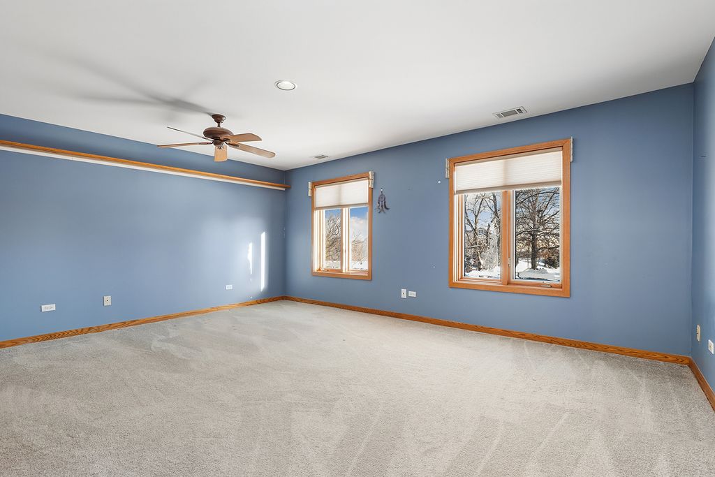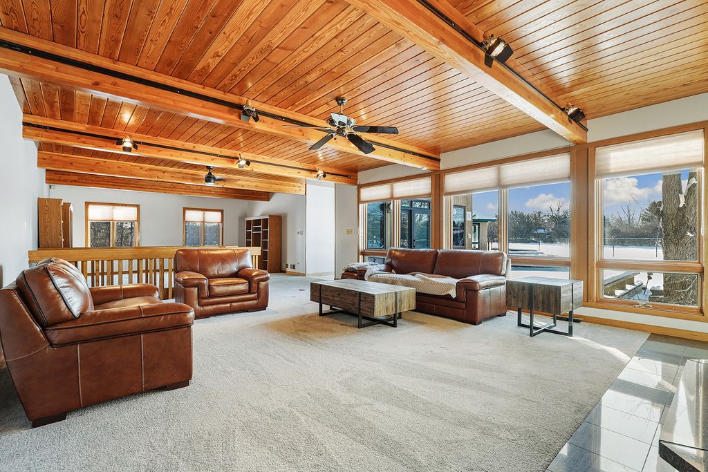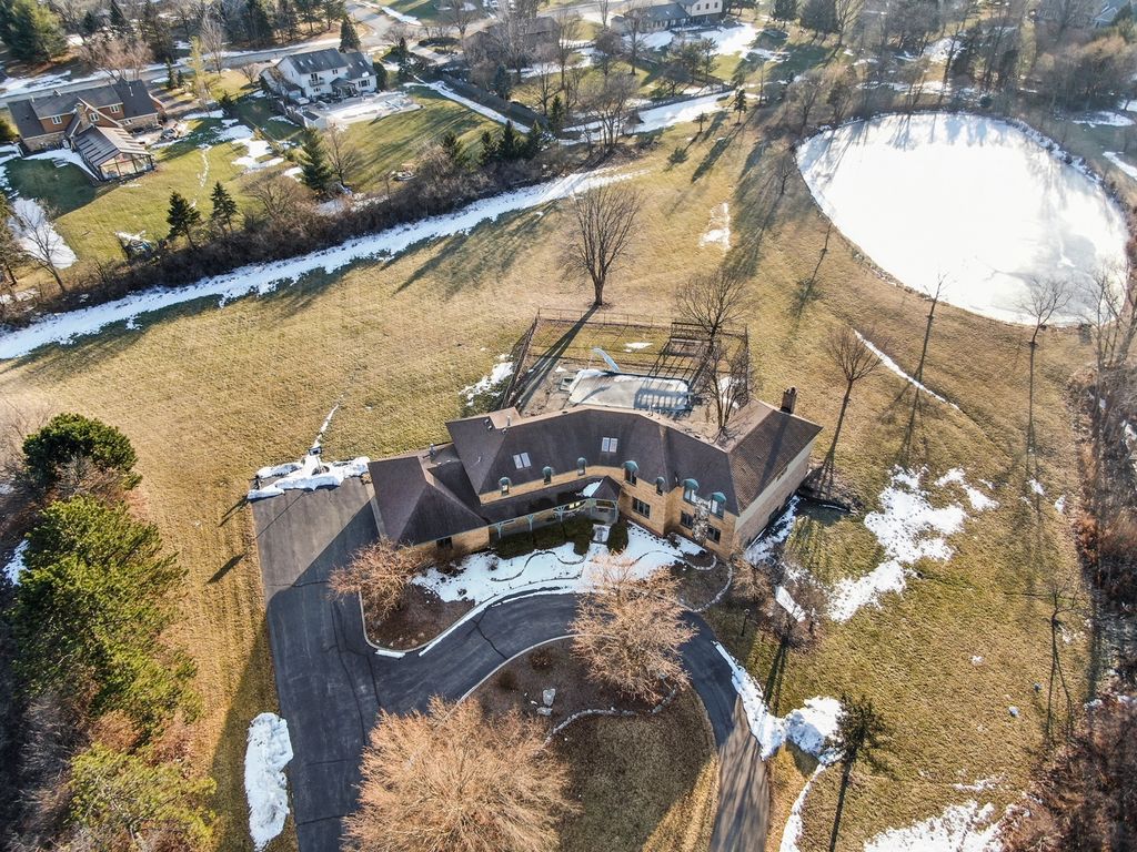 Experience the rare combination of privacy, space, and convenience in this custom-built estate set on 5.67 scenic acres with a stocked private pond, located in the highly sought-after Lincoln-Way East school district. Surrounded by open green space and peaceful views in every direction, this property offers a true retreat just minutes from shopping, dining, Metra access, and everyday essentials. A welcoming front porch leads into a dramatic two-story foyer with sweeping views of the grounds and an elegant spiral staircase. The heart of the home is designed for both everyday living and entertaining, featuring a chef's kitchen with a large center island, generous cabinetry, stainless steel appliances, and a sun-filled breakfast room. The adjacent living room is anchored by a striking wall-to-wall stone fireplace and custom wood beam ceiling, while a nearby flex space offers endless options for a home office, playroom, or reading nook. The main level also includes a private guest bedroom with a full bath, ideal for visitors or multigenerational living, along with a formal dining room that opens directly to the patio and in-ground pool-perfect for hosting special gatherings. Upstairs, the luxurious primary suite serves as a true sanctuary with a private sitting room, dual-sided fireplace, spa-inspired bath with jetted tub, separate shower, dual vanities, and an oversized walk-in closet. Three additional spacious bedrooms, a full hall bath, and a large laundry room complete the upper level. The finished basement expands the living space even further, offering a large family room equipped with a projector system for movie nights or game days, an additional full bath, bonus flex space, and excellent storage with direct access to the heated three-car garage. Step outside to your own private oasis featuring a gated in-ground pool with expansive patio, all overlooking the beautifully maintained 5.67-acre property with endless room to explore, relax, and entertain. Notable updates include a new roof (2020), furnace and air conditioning (2021), paved driveway (2021), water purification system and softener (2019), pool liner (2024), water heater (2025), electrical updates (2025), in-ground sprinkler system, backup generator, and a heated three-car garage with basement access. Ideally located near Old Plank Road Trail, Hickory Creek Preserve, golf courses, and highly regarded Lincoln-Way schools, this exceptional property offers the perfect balance of luxury, privacy, and location.