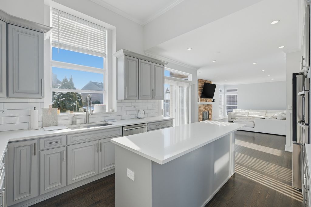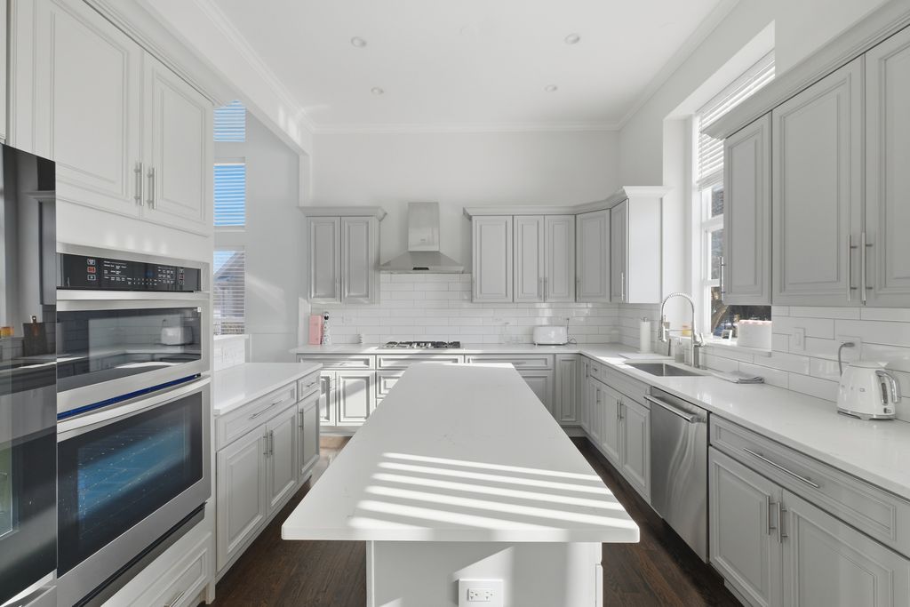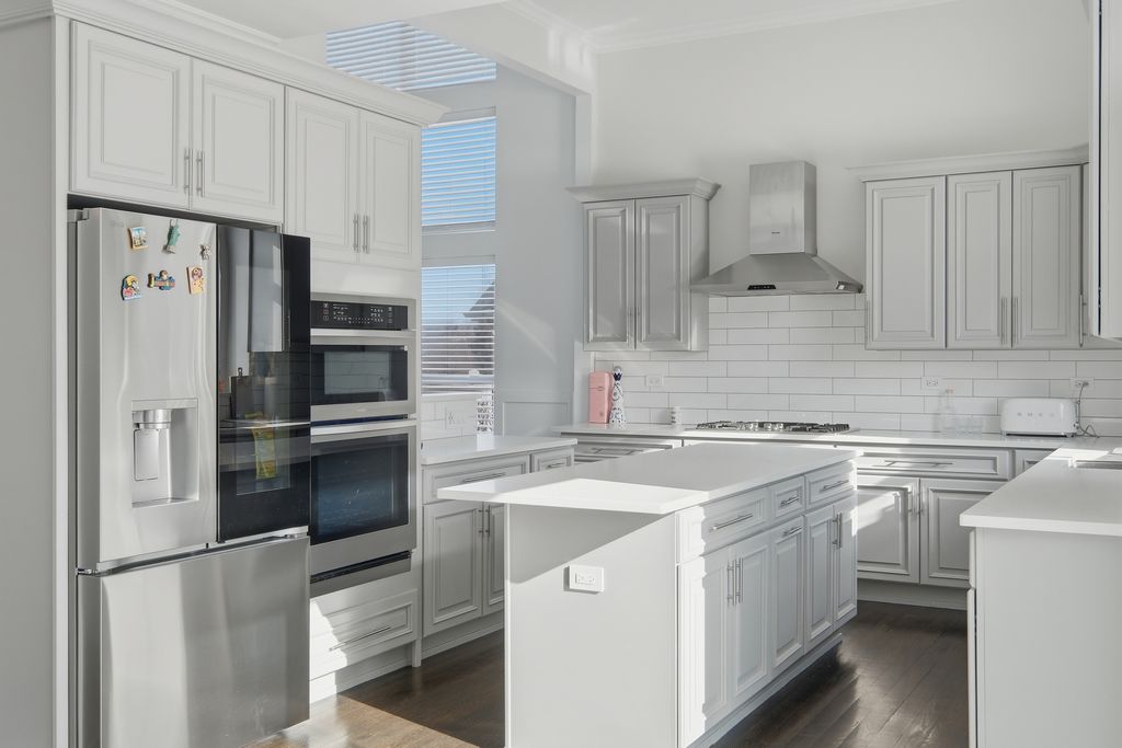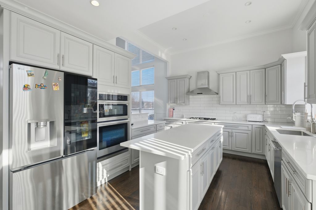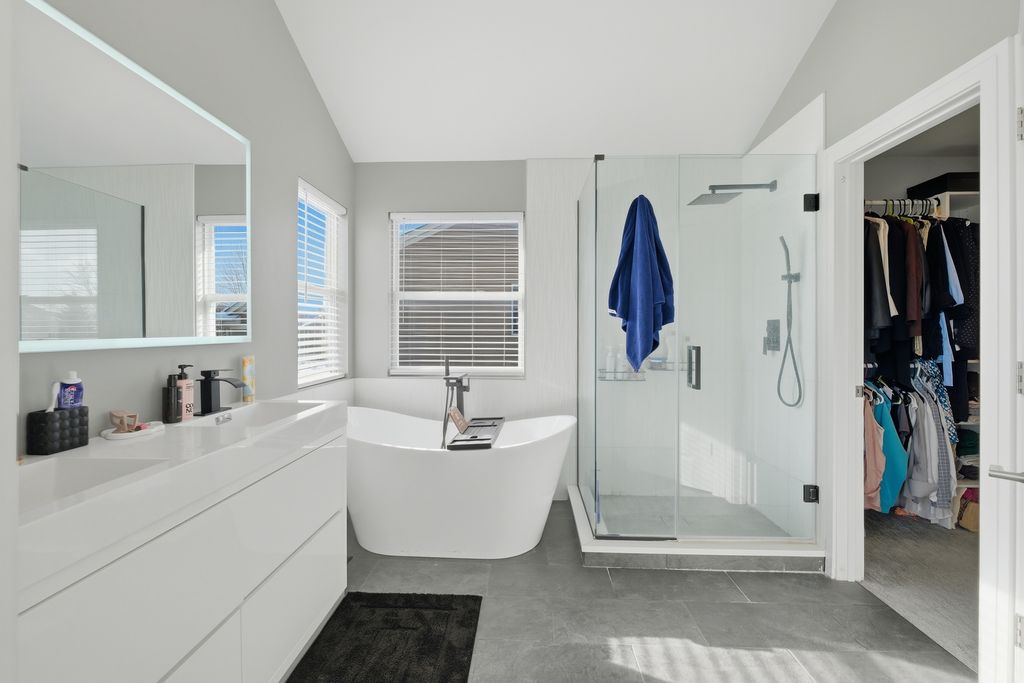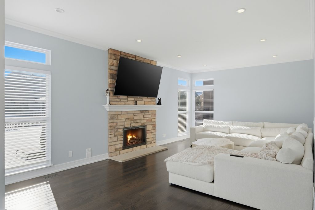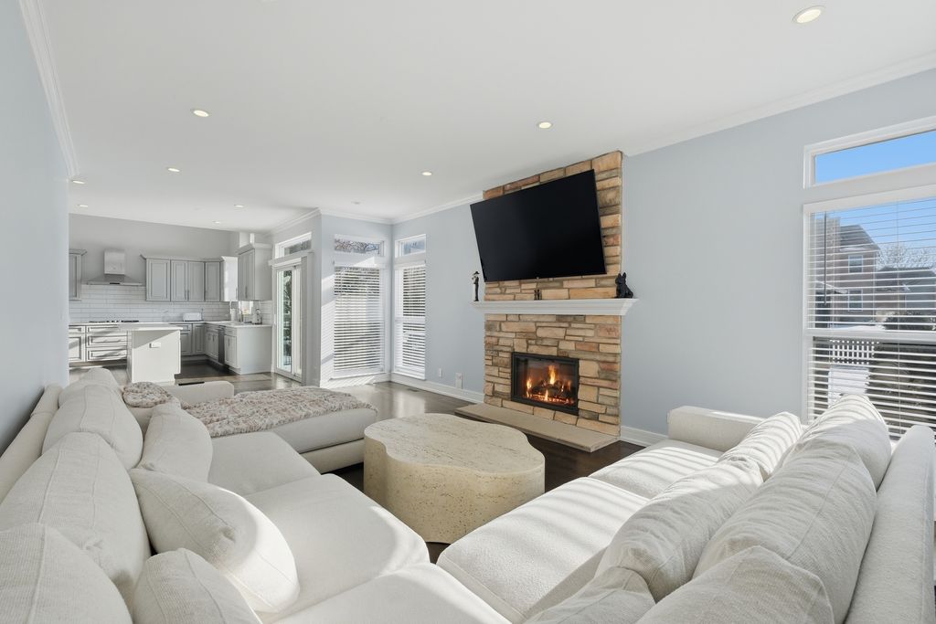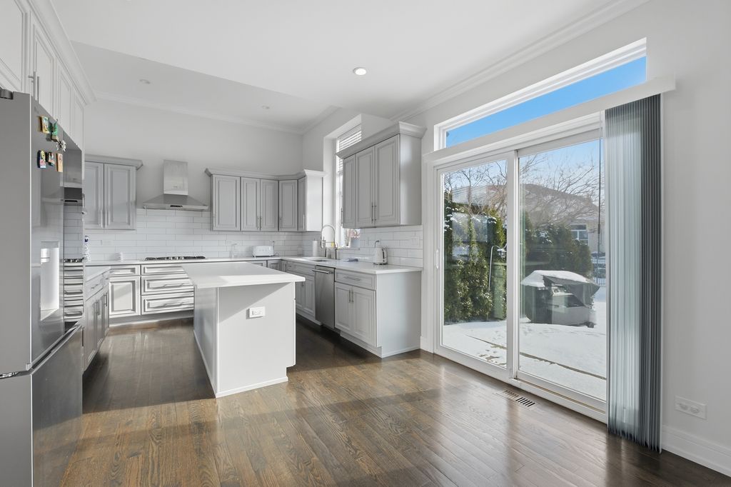 Stunning 4-bedroom, 3-bathroom residence featuring a spacious semi-finished full basement and premium upgrades throughout. Enter through a dramatic two-story sun-drenched foyer flowing into a formal living and dining space. The heart of the home is the brand-new gourmet kitchen, equipped with 42-inch custom cabinetry, quartz countertops, and a top-tier stainless steel package including a double oven and 4-door Samsung refrigerator. This culinary space opens seamlessly to a cozy family room anchored by a gas fireplace. Versatility abounds with a first-floor bedroom (or office) adjacent to a full bath and laundry. Upstairs, discover a versatile loft perfect for media or play, alongside two generous bedrooms. The massive Primary Suite serves as a true retreat, offering space for a private sitting area and a spa-inspired ensuite with a freestanding soaking tub, glass shower, double vanity, and LED mirror. Outside, enjoy a private, fenced backyard oasis with a patio, newer shed, and included playground set. Complete with an extra-long driveway, 2-car garage, and new water heater (2024). Prime location near shopping and dining!