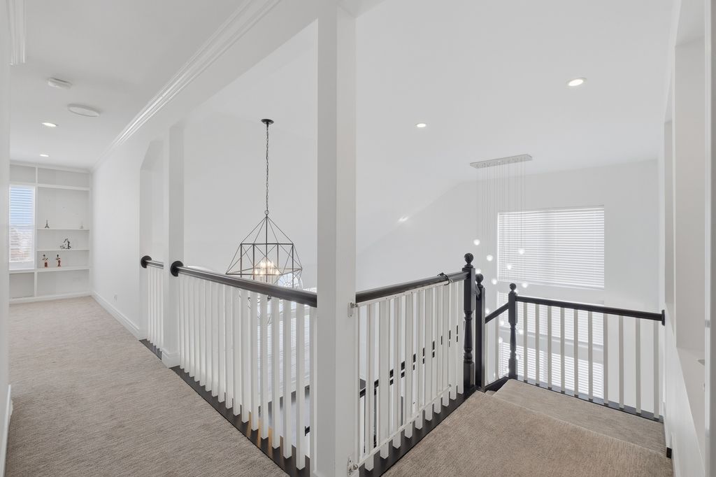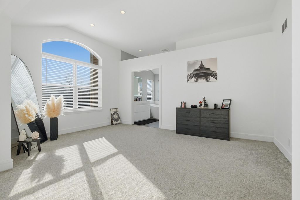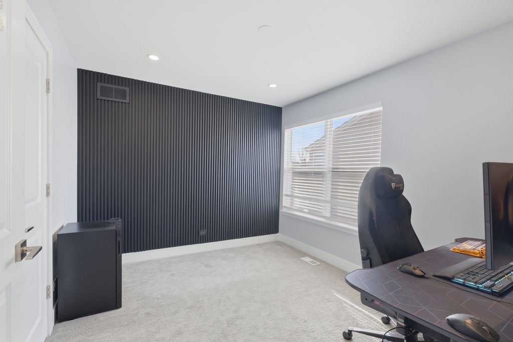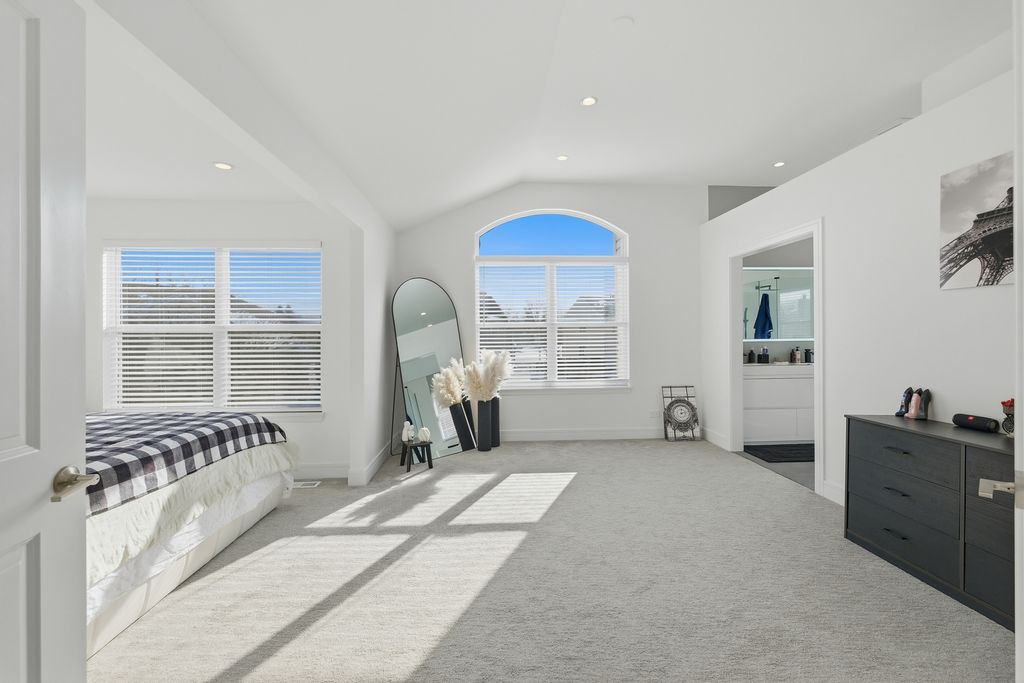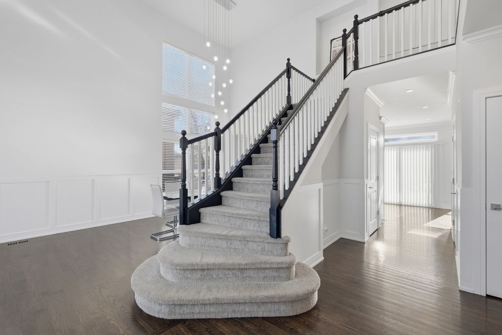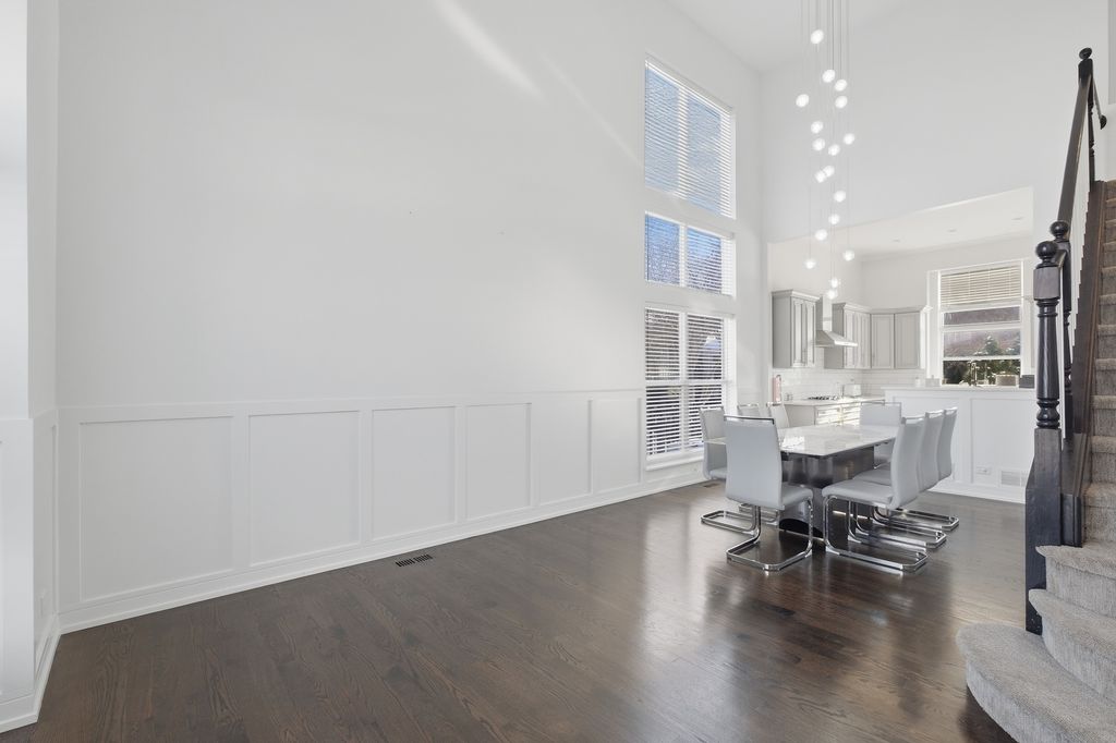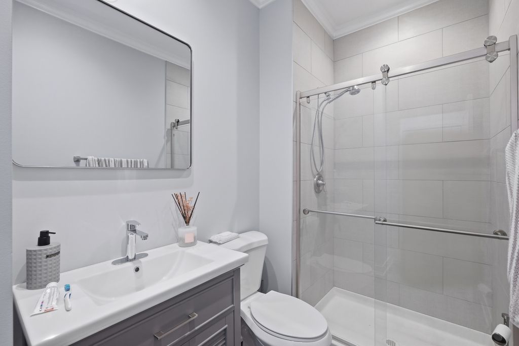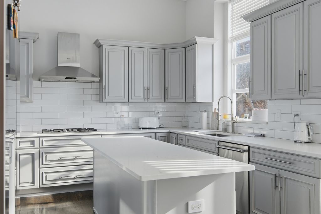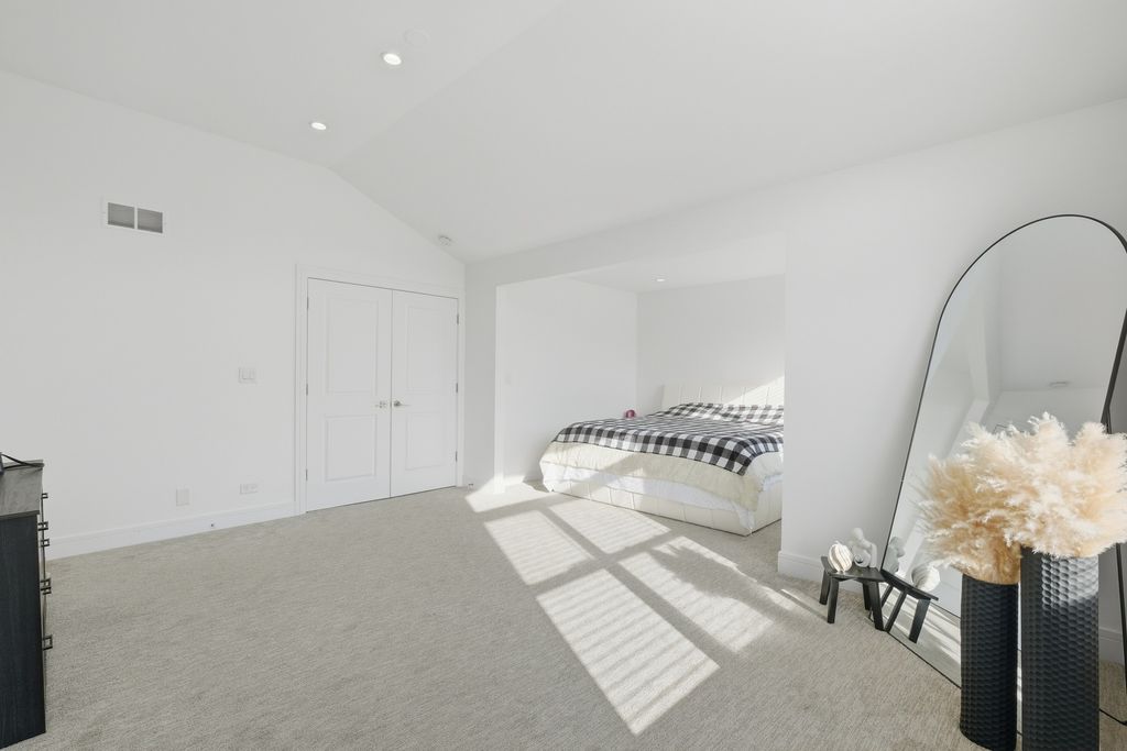 Stunning 4-bedroom, 3-bathroom residence featuring a spacious semi-finished full basement and premium upgrades throughout. Enter through a dramatic two-story sun-drenched foyer flowing into a formal living and dining space. The heart of the home is the brand-new gourmet kitchen, equipped with 42-inch custom cabinetry, quartz countertops, and a top-tier stainless steel package including a double oven and 4-door Samsung refrigerator. This culinary space opens seamlessly to a cozy family room anchored by a gas fireplace. Versatility abounds with a first-floor bedroom (or office) adjacent to a full bath and laundry. Upstairs, discover a versatile loft perfect for media or play, alongside two generous bedrooms. The massive Primary Suite serves as a true retreat, offering space for a private sitting area and a spa-inspired ensuite with a freestanding soaking tub, glass shower, double vanity, and LED mirror. Outside, enjoy a private, fenced backyard oasis with a patio, newer shed, and included playground set. Complete with an extra-long driveway, 2-car garage, and new water heater (2024). Prime location near shopping and dining!