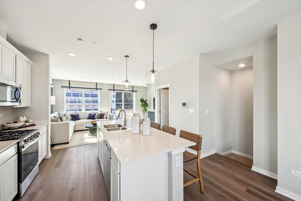 Discover yourself at 1175 Lakepointe Drive. This beautiful townhome is in our Northgate at Veridian community in Schaumburg, Illinois, and will be ready for a February move-in. Beautiful, private views overlooking pond. This Grant plan offers 1827 square feet of living space with 3 bedrooms, 2.5 baths, and an additional flex space. Upon entering the home, you will be greeted by the finished flex room, which would be perfect as a den, office or playroom. Walking up the stairs, you will find this home's open concept living space. The expansive kitchen is central to both the dining and great rooms and is the perfect space to gather. The kitchen features designer soft-close cabinetry, a large island with quartz countertops, a pantry, and stainless-steel appliances. Upstairs you will find a large primary bedroom with a spacious walk-in closet and en suite bath. There is also a laundry room, a second full bath, and two additional bedrooms. Decorate with the updated Craftsman style trim and 5-panel doors. Luxury vinyl plank flooring is included in the great room, kitchen, dining area, all baths, and the laundry room. All Chicago homes include our America's Smart Home Technology featuring a smart video doorbell, smart Honeywell thermostat, smart door lock, Deako smart light switches and more. Photos are of similar home. Work, play, and live all one community!