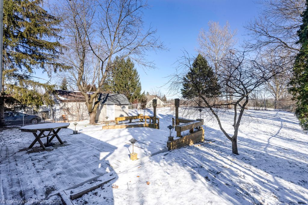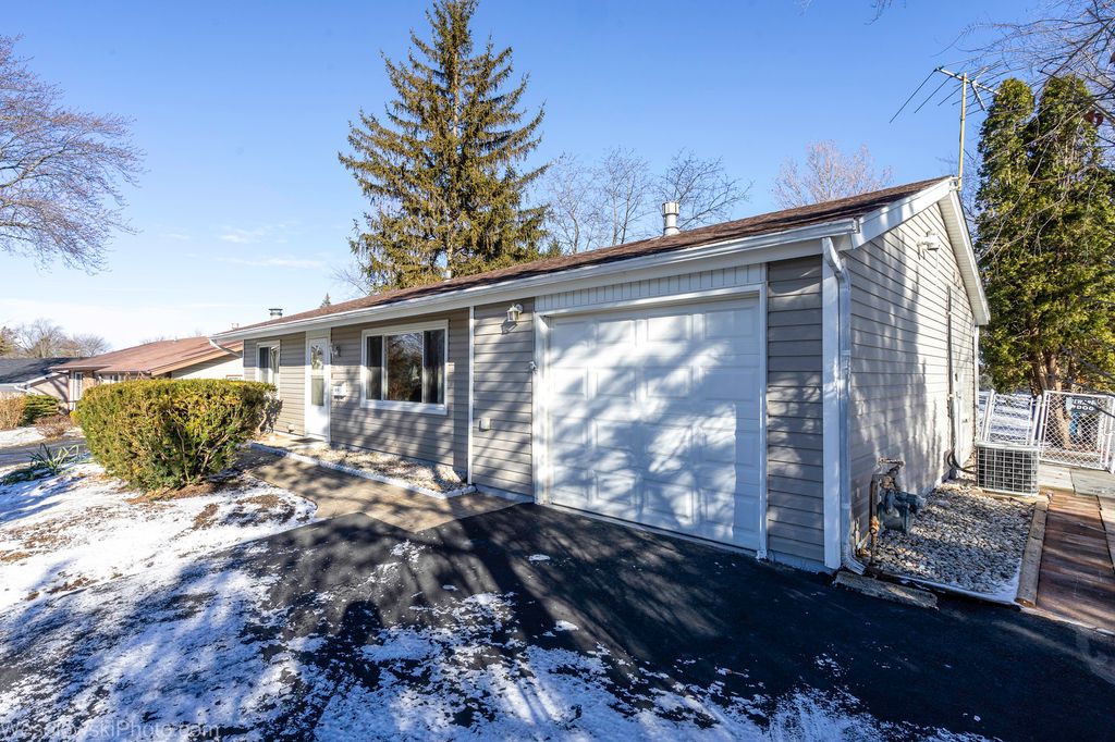 Nicely updated and well-maintained ranch offering three bedrooms and one bath with attached garage. Nicely updated kitchen with elegant cabinets, granite counters, and a convenient eat-in table space. Hardwood floors run through the living room and all bedrooms. A separate laundry room includes a washer and dryer. Newer furnace-2 years old.Gorgeous private backyard with a spacious wooden deck, perfect for relaxing or entertaining. The property includes an owner-built garden shed for extra storage and convenience. The newer asphalt driveway provides space for parking for up to three cars. Everything you need is conveniently located on one level. Move-in ready!