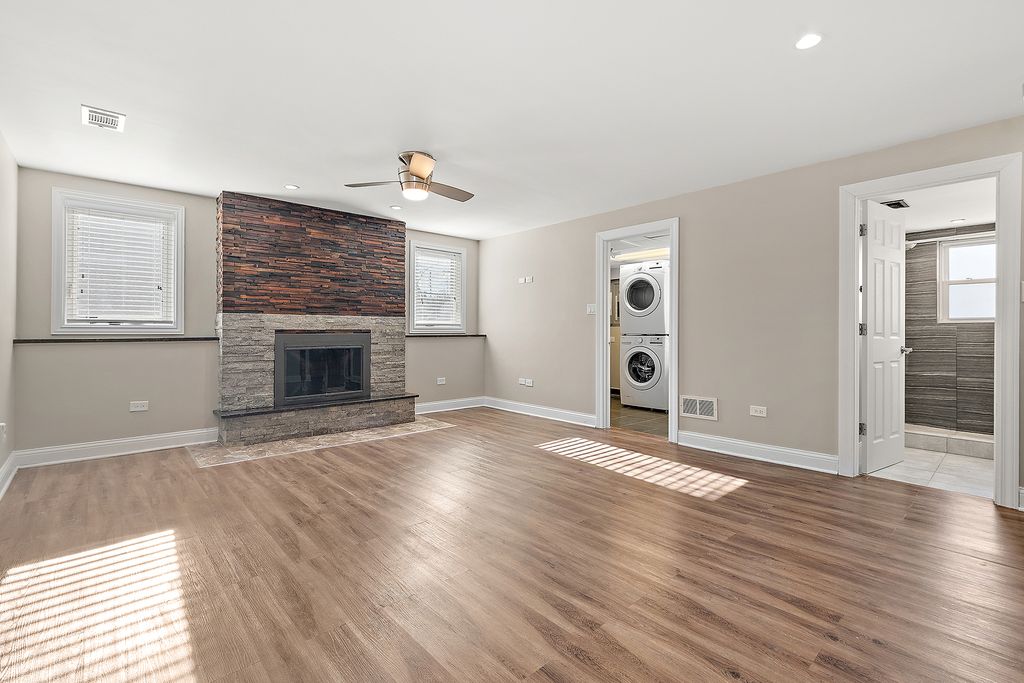 Move right into this beautifully updated 3-bedroom, 2-bath home tucked away on a quiet cul-de-sac backing to open space. The main level and upstairs feature hardwood floors throughout, complemented by fresh paint and updated bathrooms. The open-concept living room flows seamlessly into the kitchen, showcasing custom cabinetry, granite countertops, designer backsplash, stainless steel appliances, and a convenient breakfast bar, perfect for everyday living and entertaining. The finished lower level offers luxury vinyl flooring with radiant heated floors, a cozy gas fireplace, and an oversized walk-in closet ideal for extra storage, plus additional storage in the crawl space. Enjoy outdoor living in the fully fenced backyard with deck and a storage shed. Ideally located just two houses down from the park. Additional highlights include a 2-car garage and laundry room with new washer and dryer. Major updates include roof, windows, air conditioning, appliances, and washer/dryer. A true MUST-SEE home in a prime location.