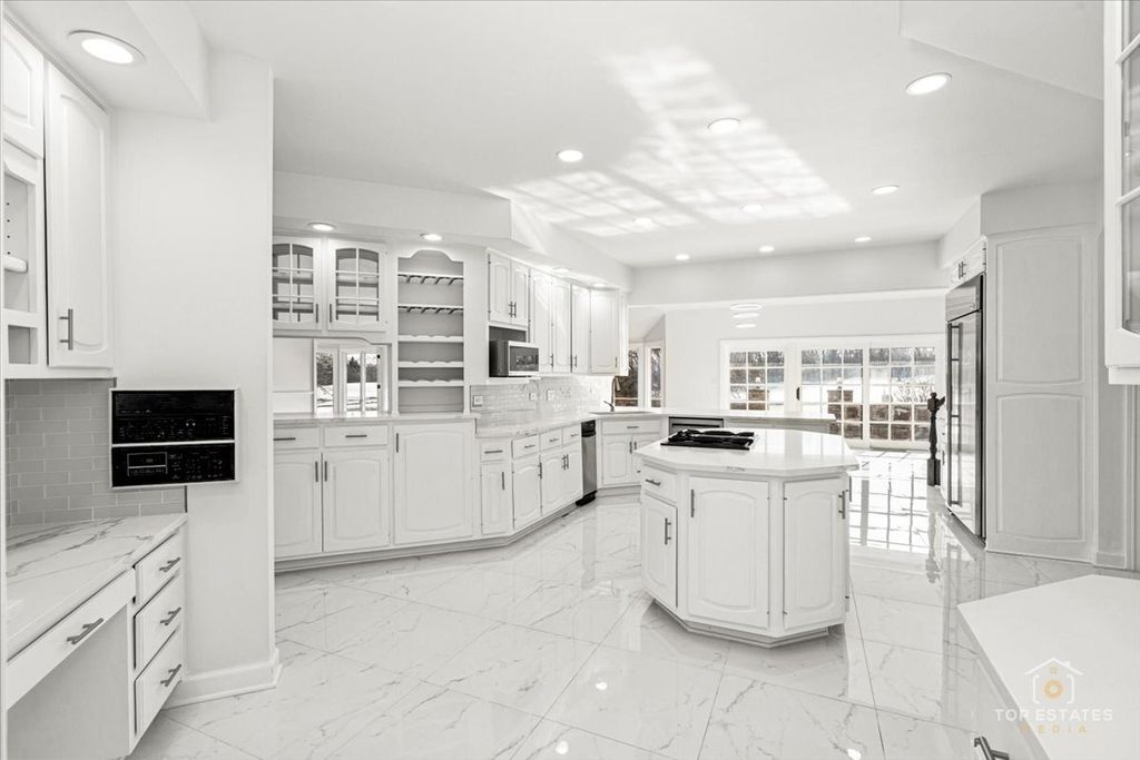 Experience refined living in this stunning custom brick estate, perfectly positioned on a private cul-de-sac lot within the prestigious Crystal Tree community. Offering approximately 10,000 square feet of finished living space, this impressive residence includes five generously sized bedrooms, five full bathrooms, and one half bath-thoughtfully designed for both comfortable daily living and elegant entertaining. The bright, open floor plan is filled with natural light and showcases soaring ceilings, refined architectural details, and a seamless blend of formal and casual living spaces. Expansive kitchen and living areas create an ideal setting for gatherings, while oversized windows capture peaceful views of the surrounding landscape. Recent improvements include a new roof, gutters, and skylights. Additional highlights feature a four-car heated garage and abundant storage throughout. Located in a 24-hour gated community, this property offers golf course frontage with sweeping southwest fairway views of the renowned Crystal Tree Golf and Country Club.