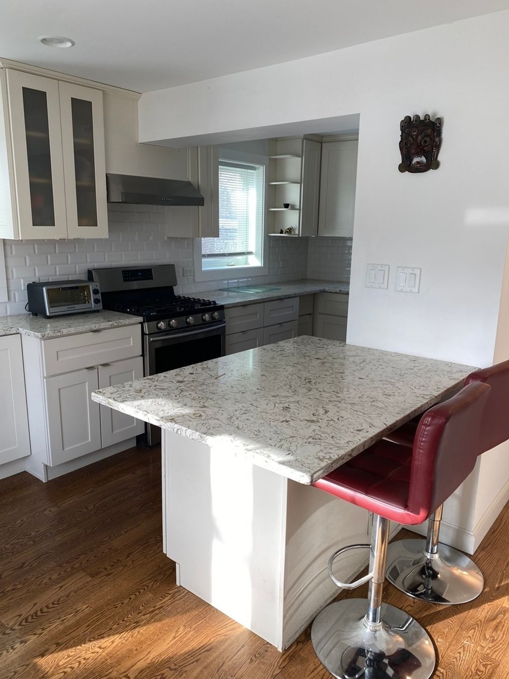 Well-maintained a Georgian Style Home features a cozy kitchen and dinette area, stainless steel appliances, beautifully designed quartz countertops, wood floors. Tall, evenly spaced windows in the living room provide plenty of natural light, making living room welcoming and great for entertaining or relaxing. Three spacious bedrooms and two newly updated and refreshed bathrooms. Great location close to shopping, restaurants, parks, schools.