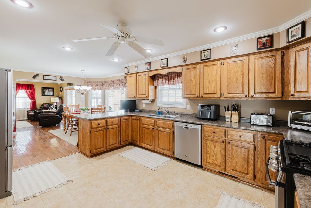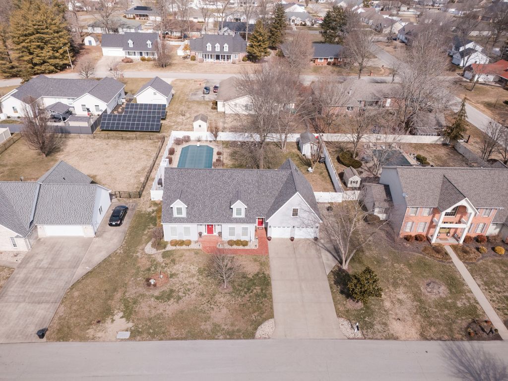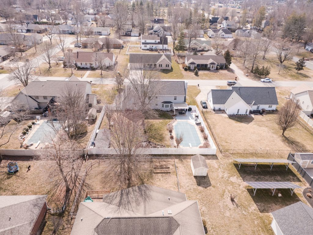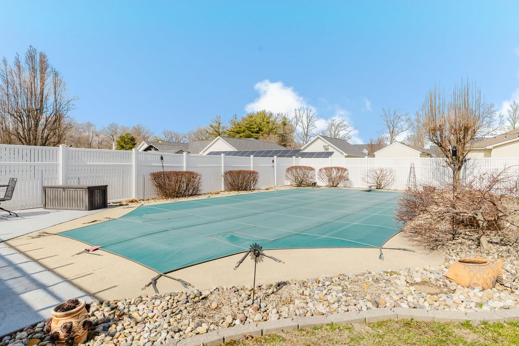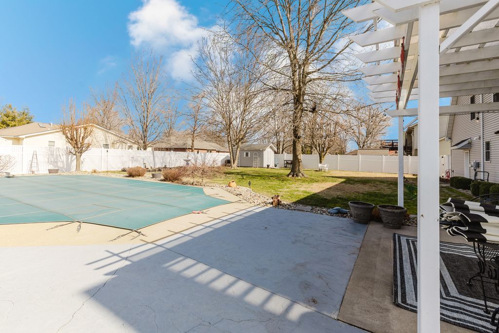 Welcome to this beautiful, well-maintained home located in one of the most desirable neighborhoods in Marion. Offering approximately 3,600 sq ft of living space, this home truly has room for everyone - and the sellers hope you will love and enjoy it as much as they have. The main level features two separate living rooms, a formal dining room, and an amazing kitchen with abundant cabinetry, an eat-in area, and a cozy living space with a fireplace - all connected to create the perfect setting for gathering, entertaining, and making memories. You'll also appreciate the large walk-in pantry and convenient mudroom/laundry room, thoughtfully separated by a door to keep everyday messes tucked away. All four bedrooms are located upstairs, including a spacious primary suite with its own private bath, a large walk-in closet, and an additional flex room currently used as an office - ideal for a sitting room, nursery, or quiet retreat. Storage throughout the home is plentiful and not to be missed. Step outside to enjoy one of the larger fenced yards in the neighborhood, complete with an 18x36 in-ground swimming pool perfect for summer fun, plus an additional storage building for all your extras. Recent updates include a new roof and one HVAC unit, offering added peace of mind for years to come.