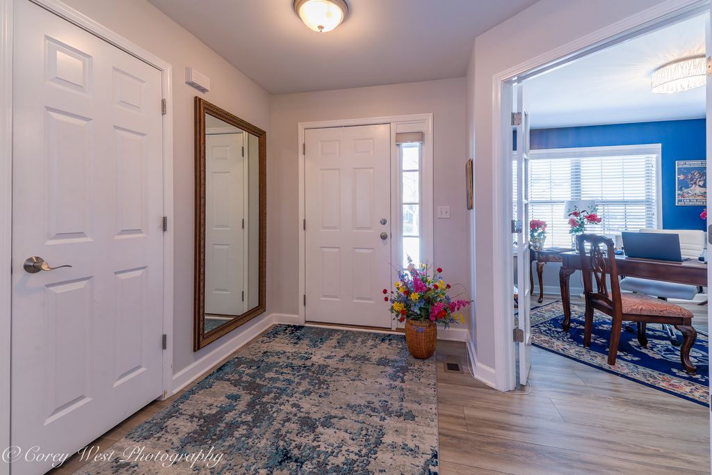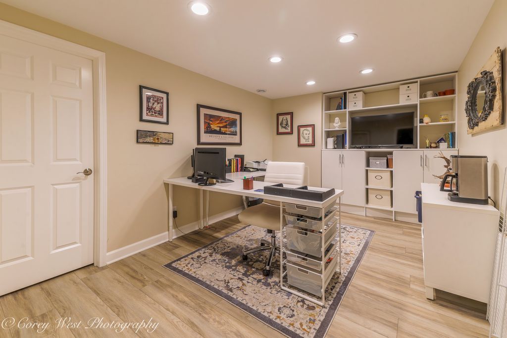 Welcome to this beautifully remodeled end-unit townhome nestled in the heart of Sycamore! Offering over 2,500 sq. ft. of finished living space, this stunning 3-bedroom plus office, 3-bath home was fully renovated in 2021 with thoughtful, custom upgrades throughout. Step inside to an inviting open floor plan featuring luxury vinyl tile, plush carpet with Tempur-Pedic padding, and contemporary lighting. The spacious living and dining room boasts a vaulted shiplap ceiling, gas log fireplace with marble surround, and elegant Restoration Hardware chandelier, complemented by custom built-in bookcases and Hunter Douglas Luminette drapes. The eat-in kitchen has custom Brakur cabinetry, soft-close drawers, pullouts, spice and cutlery organizers, and illuminated glass display cabinets. Includes new stainless steel appliances, as well as Hunter Douglas Power Silhouette shades with remote control. The lower level, newly finished in 2021, adds living space, featuring a private office with a built-in entertainment wall and walk-in closet, custom hidden storage, a full bath with glass shower and shelving, and a bedroom with custom closet. Exterior highlights include a new roof (2021), composite deck (2025), and privacy landscaping with new arborvitaes (2020) and evergreens (2021). This move-in ready home was thoughtfully designed for comfort, style, and functionality - truly a must-see!