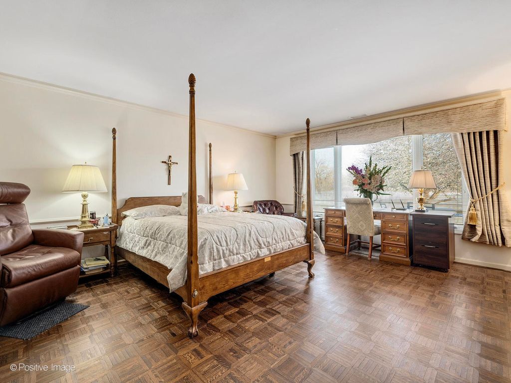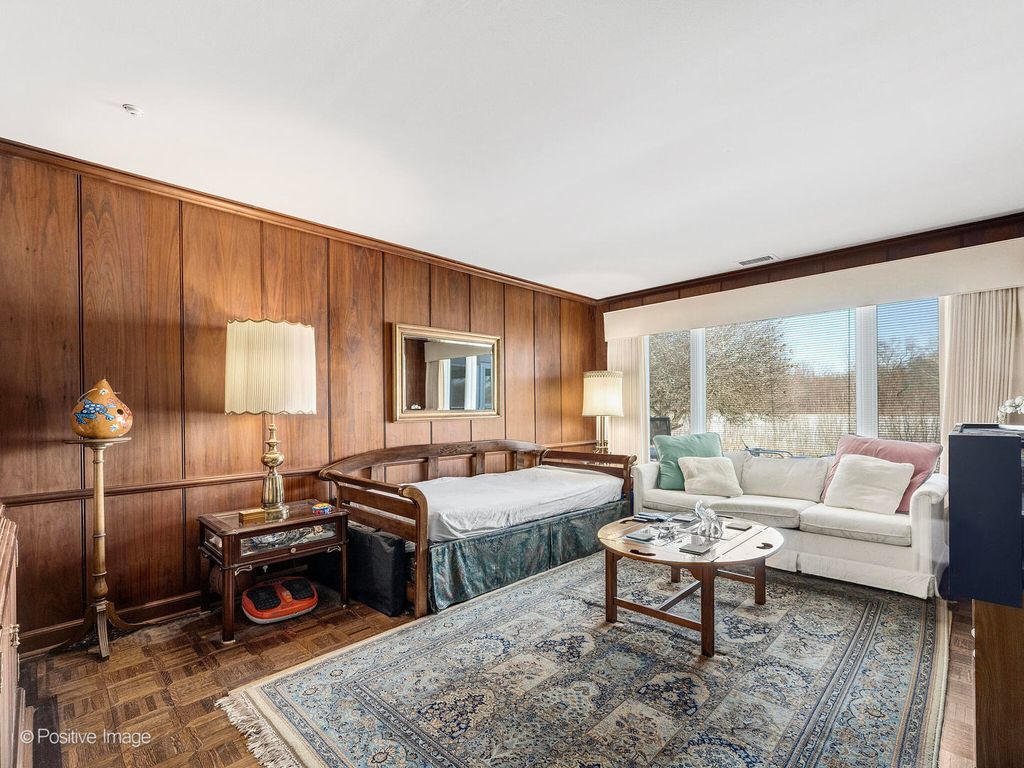 Welcome to this lovely gated community of Rivershire which welcomes you to this exceptional 3,700 plus sq ft home offering a multifaceted floor plan and a private setting with serene garden and golf course views. A dramatic two-story foyer with a bridal staircase greets you upon entry. The living room showcases floor-to-ceiling windows, a cathedral ceiling, and is open to the formal dining room-perfect for entertaining. This Home Also has 4 Bedrooms & 3 Full Bathrooms. The kitchen features an eating area, granite countertops, abundant cabinetry, and a sliding door leading to a private patio and screened porch. The family room offers a gas fireplace, built-in cabinetry, and access to a brick paver patio. The spacious primary suite boasts golf course views, two walk-in closets, and a private full bath. The main level also provides an excellent in-law suite opportunity with a living area (currently used as a den), bedroom, and full bath. Upstairs includes two generously sized bedrooms, a full bath, and additional storage space. Ideally located near walking and biking trails, dining, and entertainment, with easy access to the train and approximately 30 minutes to O'Hare. Bring your updating ideas and make this your dream home. New windows (except dining room), copper gutters, award-winning schools, and all the benefits of the Rivershire lifestyle complete this outstanding opportunity.