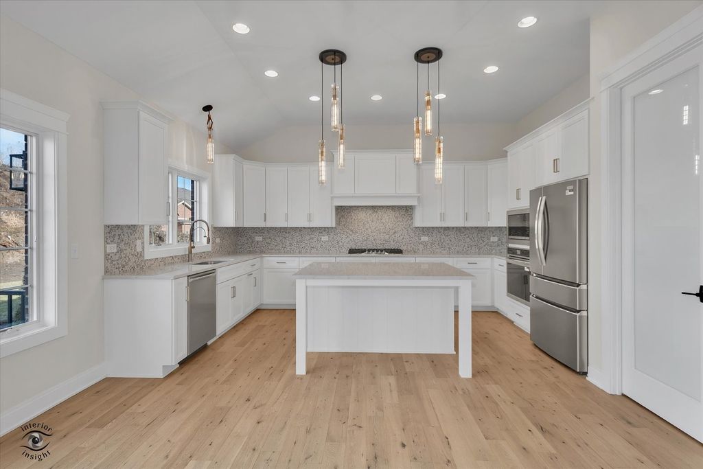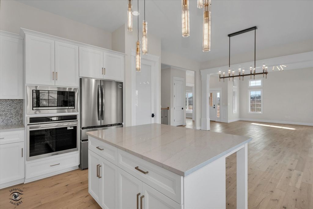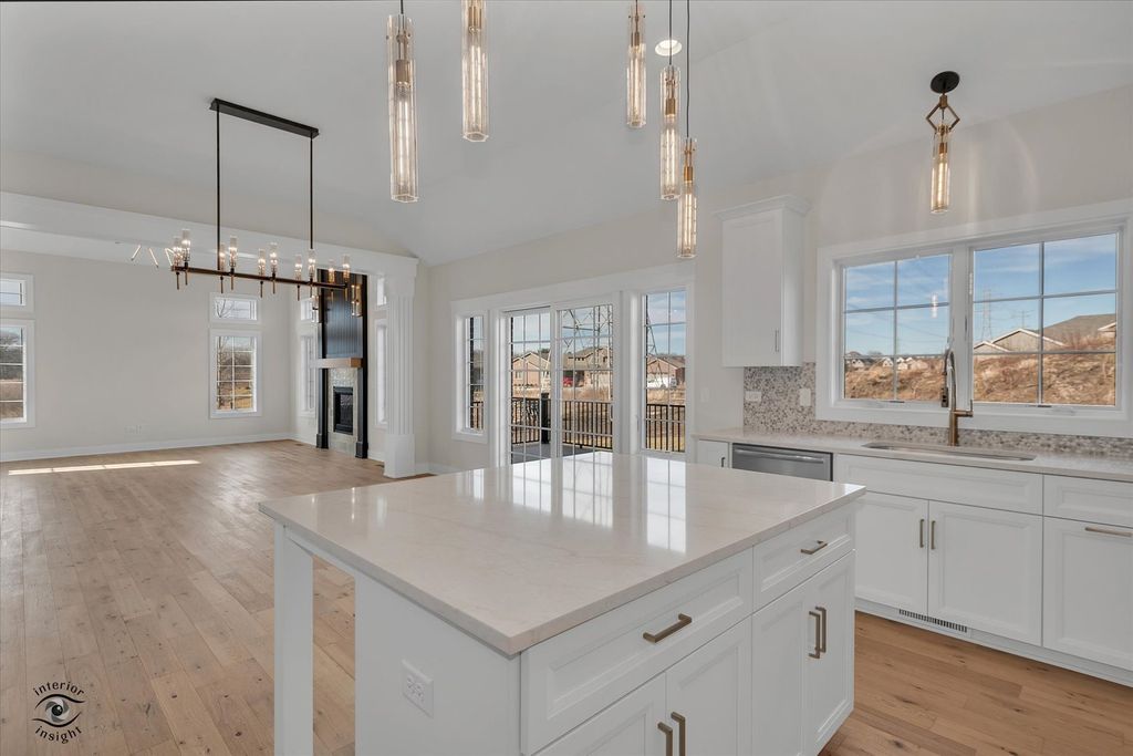 Come see this beautiful new construction ranch duplex, move-in ready and available now, located in the desirable Lighthouse Pointe community. This luxurious home offers elegant ranch-style living with a gourmet kitchen featuring custom cabinetry, quartz countertops, and abundant natural light. Thoughtful upgrades include a distinctive fireplace, wainscoting, crown molding, 8-foot doors, columns, gorgeous lighting and hardwood flooring throughout the foyer, great room, study, kitchen, and hallways. The spacious primary suite boasts both a walk-in closet and additional wall closet, along with a spa-like bath featuring a separate walk-in shower with seat and body sprays. Generous closet space, designer finishes, and premium upgrades throughout make this stunning unit truly exceptional. Now available for purchase-schedule your showing today.