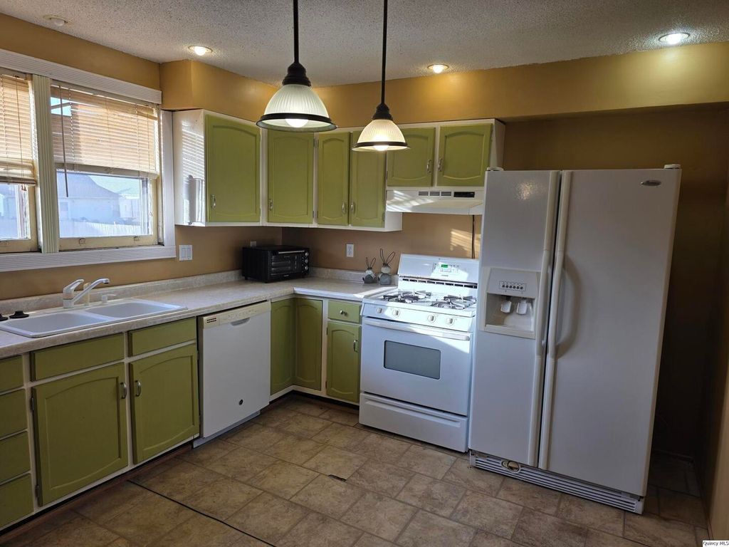 Cute home featuring generously sized rooms and a convenient location! Enjoy a huge, fully fenced yard with privacy fencing. The expansive deck, two-car carport, and storage buildings add convenience and versatility. Inside, you'll love the spacious kitchen with a pantry and an inviting dining nook. The enormous open-concept living and dining area offers plenty of space for gatherings. Updated furnace (2016) and AC (2020) provide peace of mind. Inspections are welcome - property is being sold "as is." Other roofing is roll roofing, over kitchen only.