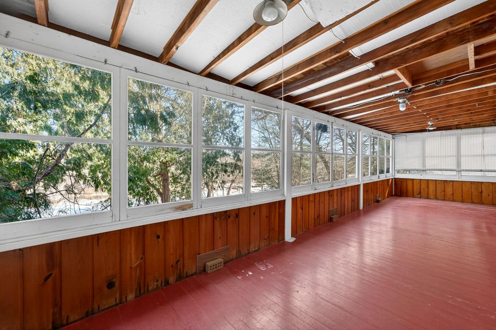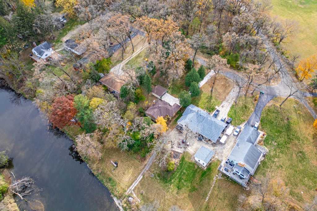 Charming brick and stone home on a quiet dead end street, set on a beautiful double lot overlooking the Kishwaukee River. Features include oak hardwood floors on the main level, 2 spacious bedrooms, and a wood burning fireplace in the living room. Large eat-in kitchen with appliances included. Enjoy river views from the huge enclosed 3 season porch. Finished lower level offers walkout to backyard, second bath, ample storage, and stone stairs leading down to the river. Home sits high on the hill with no history of flooding. Single car attached garage plus newer oversized 2.5 car detached garage with new concrete driveway. Vinyl coated chain link fenced front yard. Community well hookup 2015. Close to the forest preserves and parks, low county taxes, and Meridian 223 schools. Pool table stays. Home is "Sold As Is".