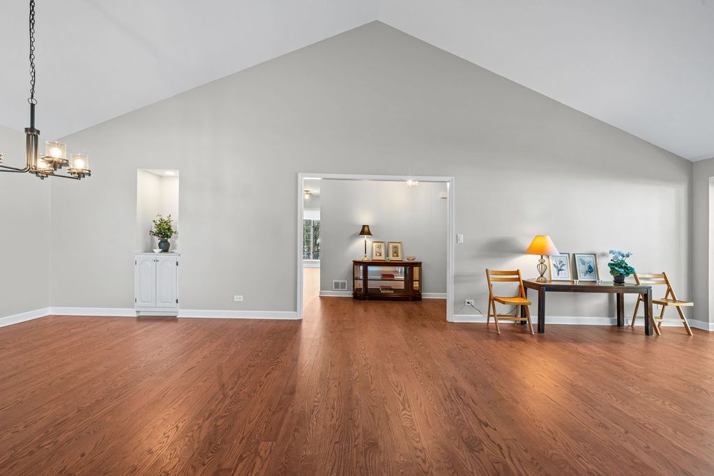 REMODELED RANCH IN HIGHLY DESIRABLE SHIRES OF INVERNESS! Fabulous end unit townhome with exposure on 3 sides feels like a single family home with the convenience of no maintenance living! Completely updated through out featuring newly installed oak hardwood floors, all new paint in designer colors, new light fixtures and additional recessed lighting, brand new stainless steel kitchen appliances, new hardware, new closet systems, updated basement bath. As you enter, a spacious foyer welcomes you and leads to a huge (32 x 15) dramatic living room dining room combination with a cathedral ceiling, wood burning fireplace and built-in bar making this the perfect space for everyday living and entertaining. Cooking is a dream in the adjacent kitchen which is bright and cheerful and features light colored cabinetry with new hardware, new lighting, new sink, brand new stainless steel appliances plus an eating area. The private bedroom wing has 2 good sized bedrooms. In the primary bedroom, there is recessed lighting, a private bathroom and good closet space. Both first floor baths have been remodeled and have Omega cherry cabinetry, Kohler fixtures, additional hand-held sprayers in the showers and Corian countertops. The full finished basement is a dream with a large recreation room perfect for relaxing, a large third bedroom, an updated full bathroom with new quartz countertop, new faucet and new lighting, a big laundry room with a wall of closets and a huge storage room that could be used for additional expansion if needed. The Shires of Inverness is a very well managed community with an outdoor pool, tennis/pickle ball courts, and a club house. Just move in and enjoy!