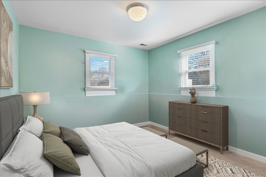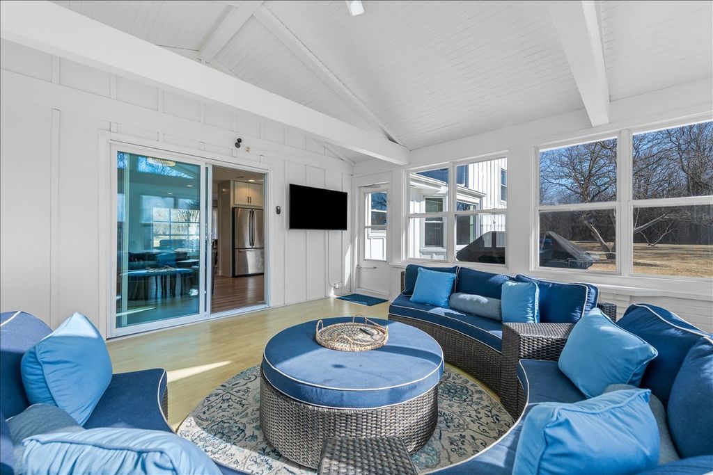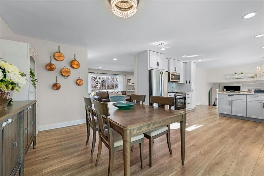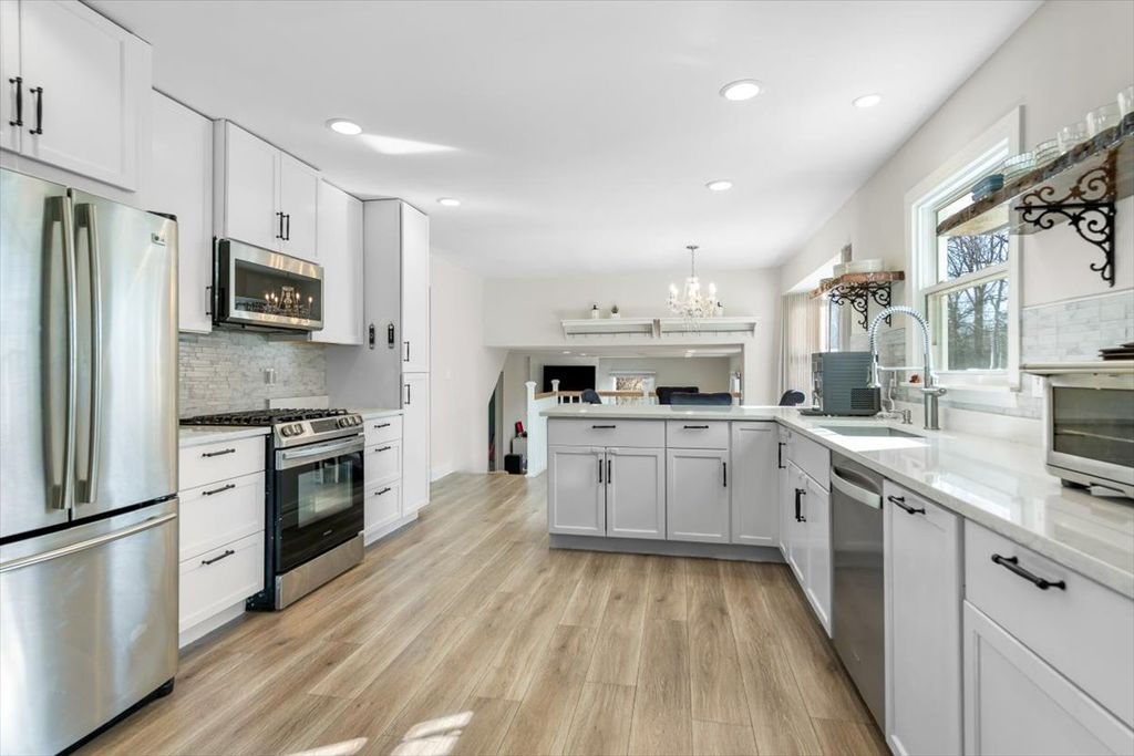 Set on a breathtaking, nearly one-acre lot, this turnkey home offers the perfect blend of style, space, and serene surroundings. From the moment you step inside, you'll appreciate the open, flowing floor plan and sun-drenched interior, highlighted by gorgeous laminate flooring that runs seamlessly throughout the main and lower levels. The spacious living room transitions effortlessly into the heart of the home-an expansive dining area and beautifully updated kitchen featuring quartz countertops, classic shaker cabinetry, stainless steel appliances, and an inviting eating area. Sliding doors lead to a stunning sunroom with vaulted ceilings and walls of windows, creating the ideal setting for morning coffee, evening cocktails, and enjoyment of the picturesque views. The open lower level is designed for comfort and flexibility, offering a generous family room with a cozy fireplace, a fourth bedroom or private office, a versatile flex space to suit your needs, and a convenient half bath. Upstairs, the impressive primary suite welcomes you through double doors and features a walk-in closet and a beautifully renovated ensuite bath. Two spacious secondary bedrooms and an updated hall bath complete the upper level. Outdoors, relax on the expansive patio and enjoy peaceful privacy with scenic natural views. The large grassy lawn offers plenty of space for play and games and is perfectly suited for a future pool! Car enthusiasts and hobbyists will love the oversized 3.5-car garage with heated, epoxy-coated floors. With numerous updates including newer windows, HVAC, and roof, this home is truly move-in ready. Simply unpack and start enjoying - an absolute 10!