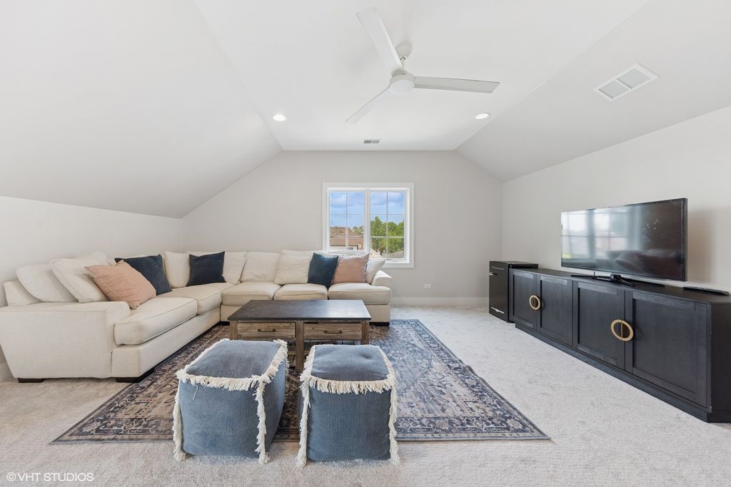 Built in 2018, this well-designed, sun-infused home features quality finishes including 9ft 1st floor ceilings, 8ft 1st floor doors, soft gray stained hardwood floors, Pella divided-light windows, shiplap accents, stacked moldings, custom staircase, and designer light fixtures. The open-concept layout offers a first-floor study and dining room flowing into a family room with a gas log fireplace and a stunning kitchen with Romar cabinetry, oversized island, quartz countertops, and a Thermador appliance package.Striking mudroom with butler pantry, boot bench, and 2 closets. Four second floor bedrooms, highlighted by a spa-inspired primary suite with Kohler bath fixtures, a free-standing soaking tub, walk-in shower, and large walk-in closet. The third floor features a half bath and flexible space ideal for a rec room, office, or fifth bedroom. Fully finished basement with full bathroom completed by owner in 2020. New in 2024, the backyard patio features a built-in refrigerator, two-tap kegerator, bar, and stool seating! All closets and pantry are finished. The first floor was professionally decorated by Kate Marker and features stunning window treatments. Smart home equipped and energy efficient throughout. All this in the highly sought-after Spring & LT School Districts - an exceptional, move-in-ready home.