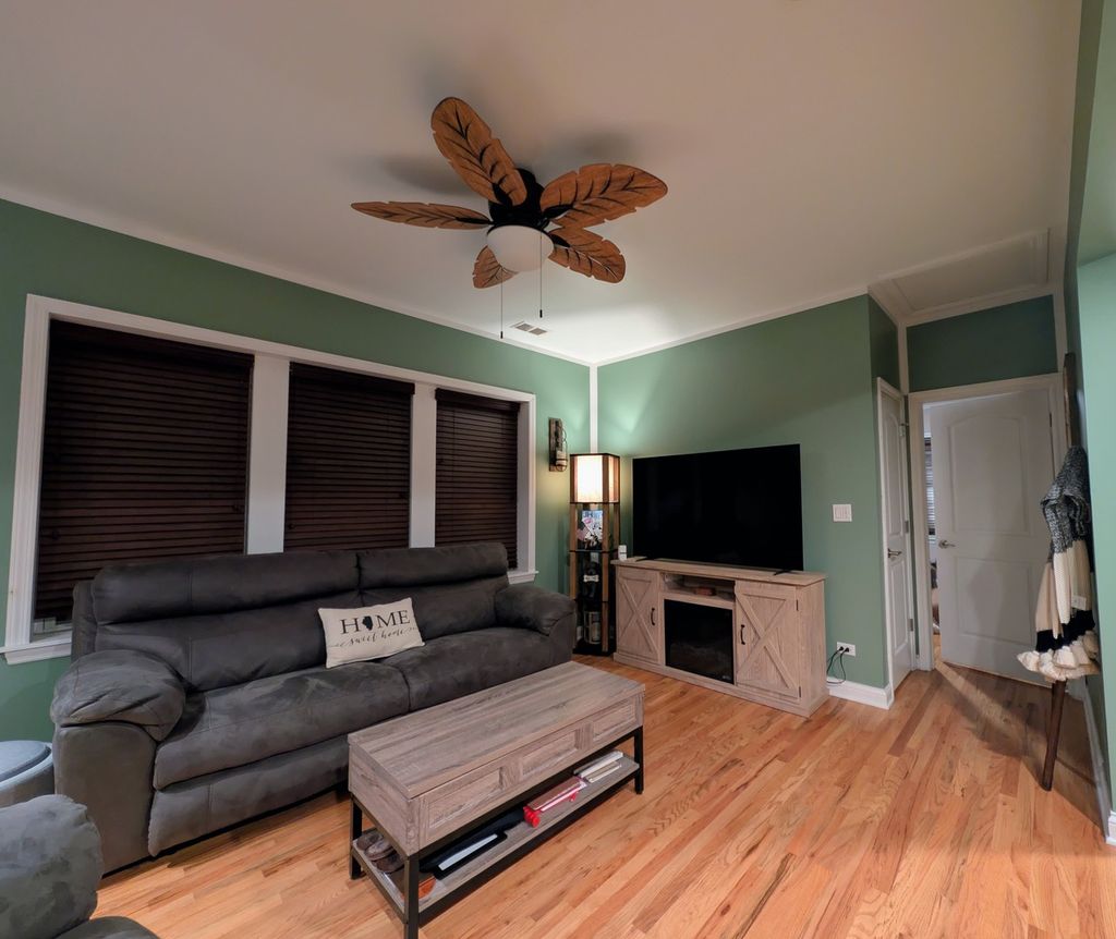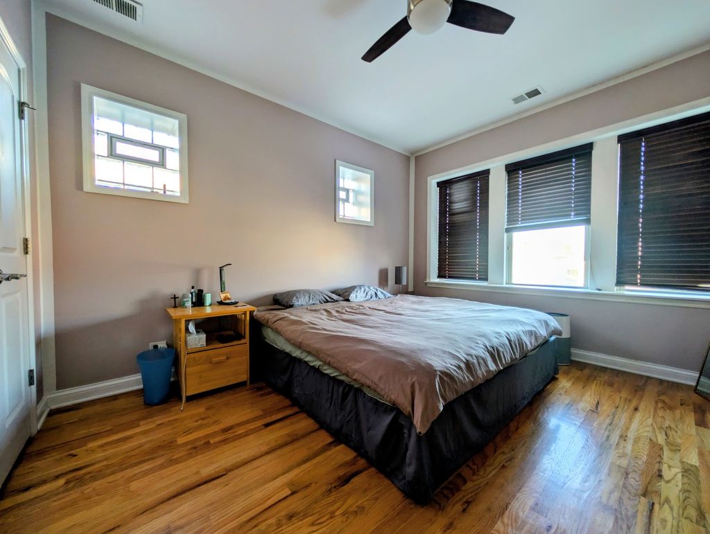 Welcome home to this top-floor unit with no shared walls, offering privacy and abundant natural light. This move-in-ready home features an open floor plan with hardwood floors throughout, two generously sized bedrooms, and one full bathroom updated in 2023. Enjoy the convenience of in-unit laundry (new in 2021) and a beautifully updated kitchen (2023) with granite countertops, 42" cabinets, and stainless steel appliances, including a newer stove (2022) and refrigerator (2023). The unit includes one parking garage spot and additional storage (5x7), along with access to a shared outdoor space in the rear. The building is investor-friendly (rentals allowed) and pet-friendly. Permit street parking ensures ample additional parking options. Ideally located with easy access to the highway, Metra, and the Blue Line-all you have to do is move in! Property is being sold as-is.