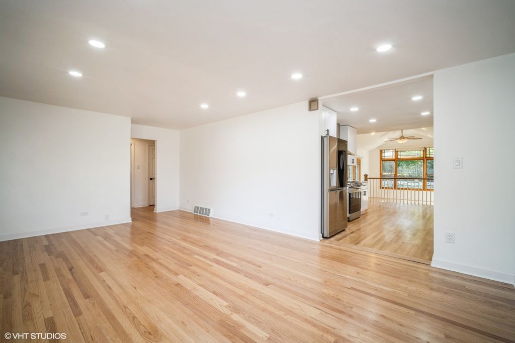 Best of both worlds - fully remodeled home and dream location in downtown Libertyville. 2,700 square feet of living space in this brick 4 bedroom 2 bath ranch home with office and family room in fully finished basement. Enjoy lush green views of your private garden from cook's kitchen that opens to dining area & great room with prairie light palladium windows and doors. Stunning great room with vaulted ceiling and french doors opening to bluestone patio & rear yard with pear and apple trees. New white shaker cabinets with freshly laid quartz stone and new stainless appliances in the kitchen. Hardwood flooring throughout the main level and wood laminate flooring in the basement. Furnace 2022, A/C 2023, Hot water heater 2019. Brand new 2026 LG laundry washer and dryer machines. Walk to everything - train, restaurants, parks, shopping. 2 and a half car attached garage with enormous driveway. Home sits on a CUL DE SAC, Move in and enjoy!