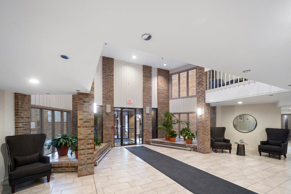 True Indoor-Outdoor Living | First-Floor Condo with Extra-Large Patio Rarely available, sun-filled 2-bedroom, 2-bath residence featuring a desirable split floor plan and an oversized (1200 SF approx) west-facing veranda-ideal for relaxing and entertaining. Generous room sizes, separate living and dining areas, and a well-balanced layout. Recent improvements include newer windows, sliding glass doors, kitchen appliances, bedroom flooring, and a full-size laundry-room dryer. Abundant storage throughout includes multiple entry closets, walk-in his and hers closets in the primary suite, and separate first-floor storage. Tandem two-car garage parking space included, conveniently located just steps from the condo's front door. Meticulously maintained building offers an on-site manager, engineer, and 24/7 manned front gate. Amenities include an exercise room, party room, outdoor pool, and tennis courts. Exterior maintenance, lawn care, scavenger service, snow removal, and condominium hot water are all included, providing easy carefree living.
